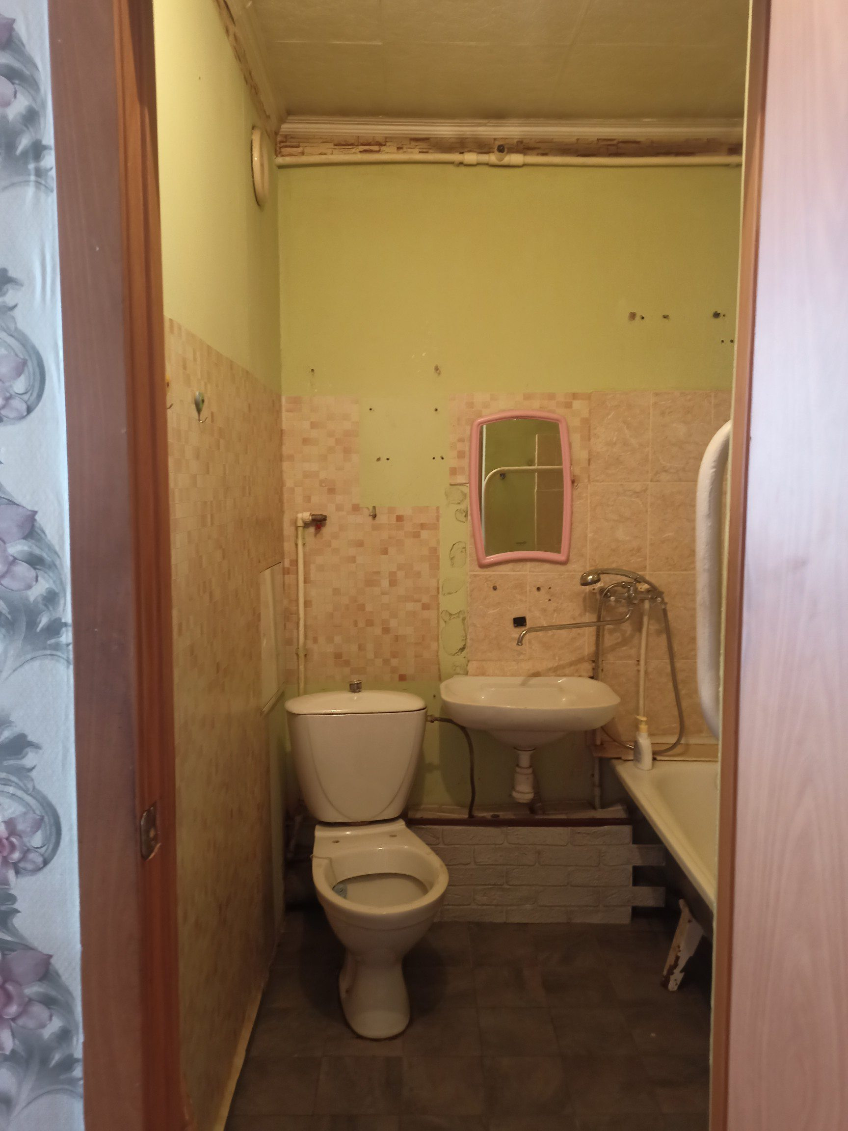 Окна ПВХ, стены, потолки выравнены, 2 балкона(остеклены). Широкий коридор, санузел совмещённый. Требуется косметический ремонт.