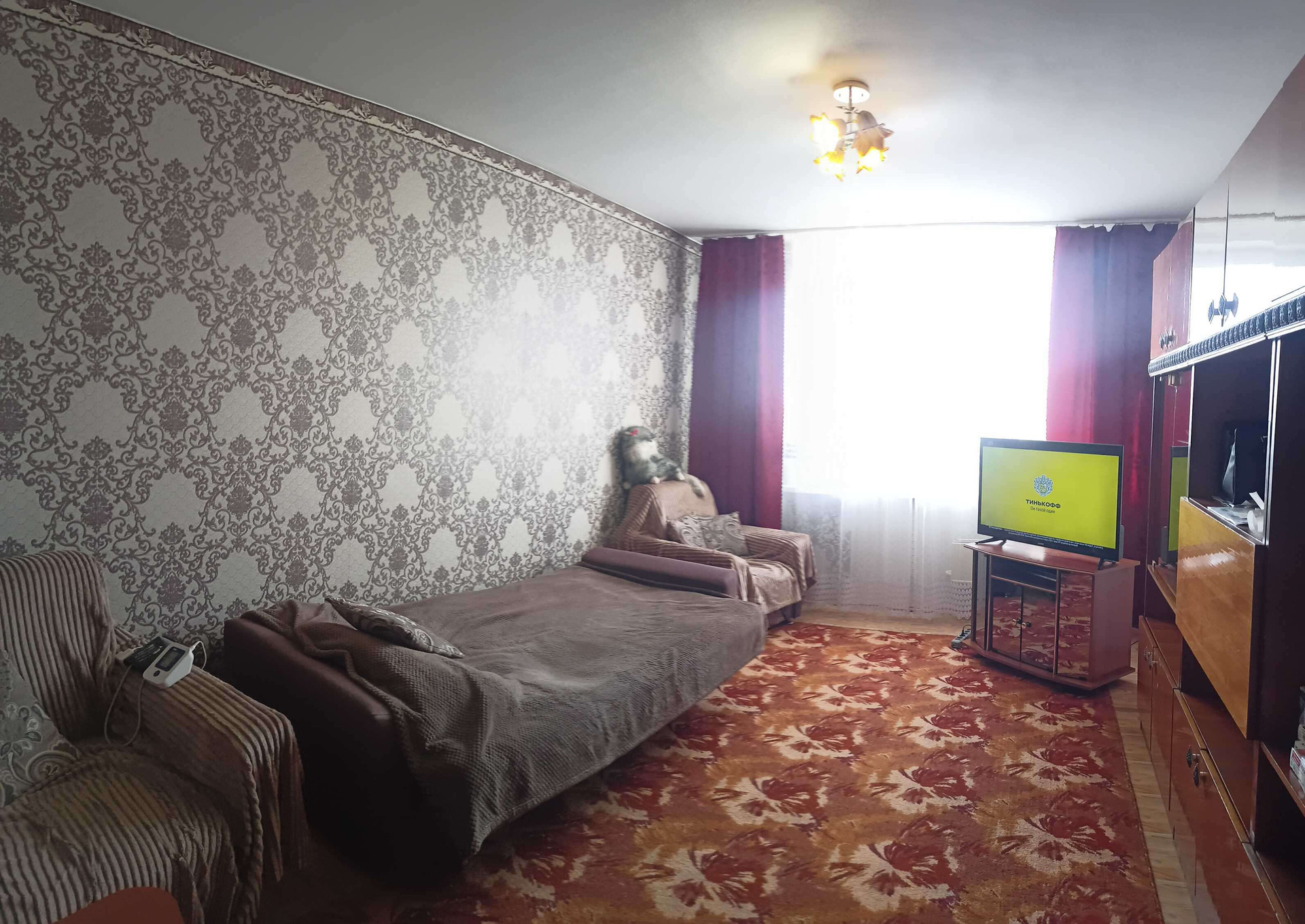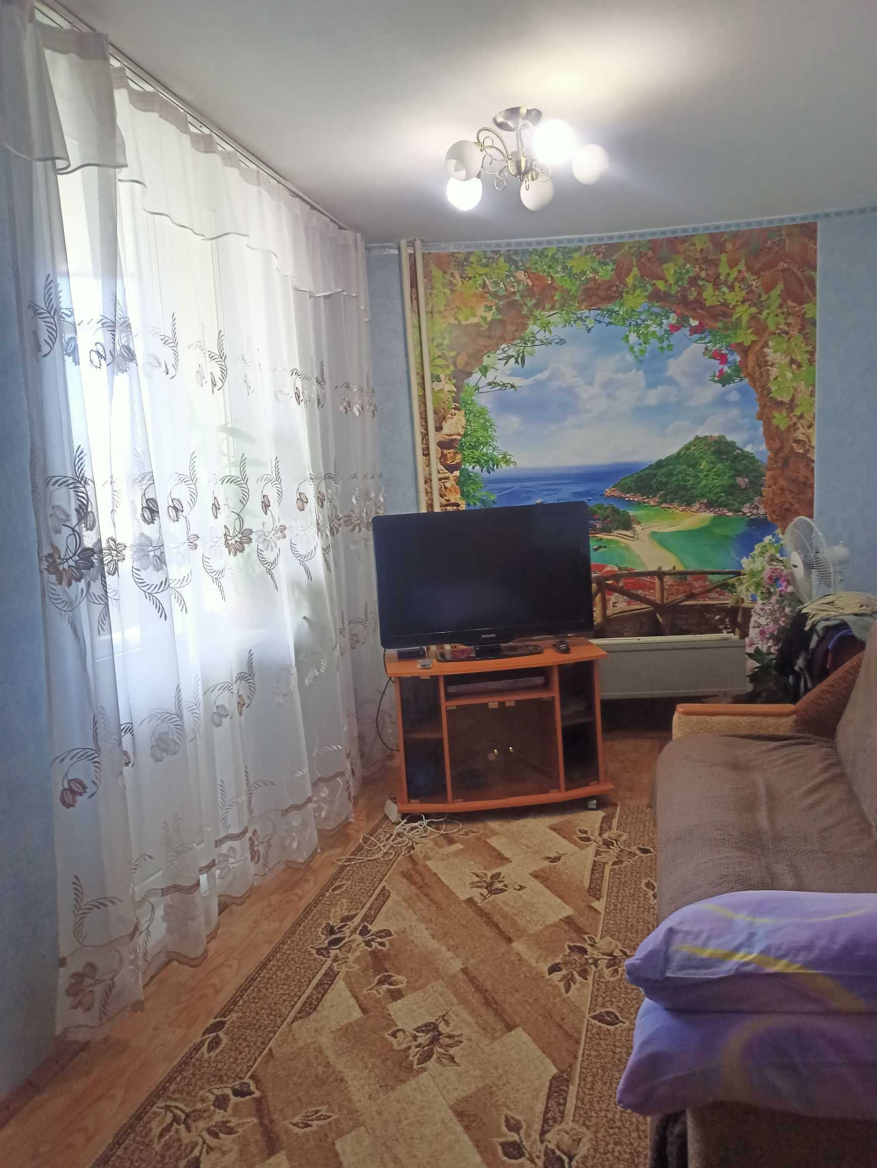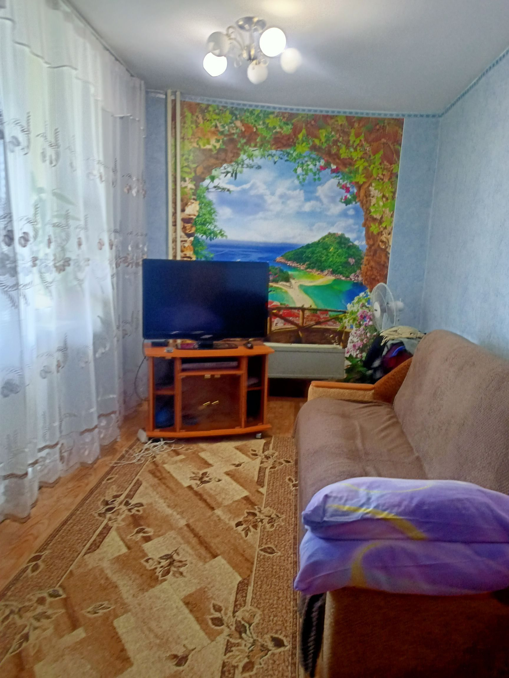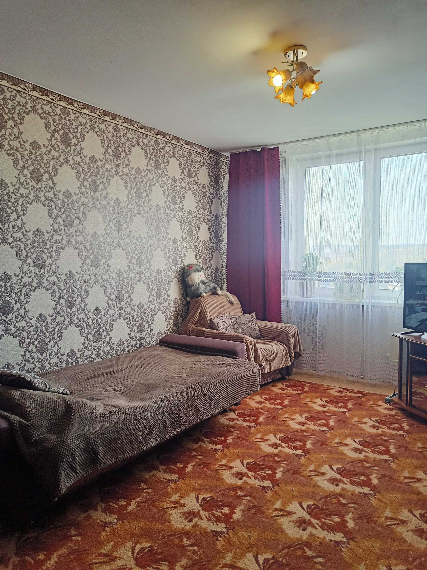 Квартира светлая, очень теплая. Окна ПВХ, комнаты изолированные, два коридора, просторная кухня с выходом на балкон (остеклен). Есть свободная лоджия, с которой открывается прекрасный вид на город. Стены, потолки ровные, на полу линолеум, санузел совмещен.