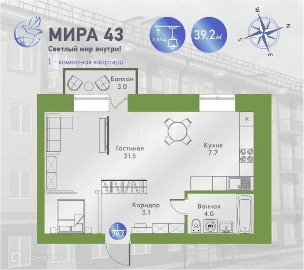 Общая площадь 39.2 м2