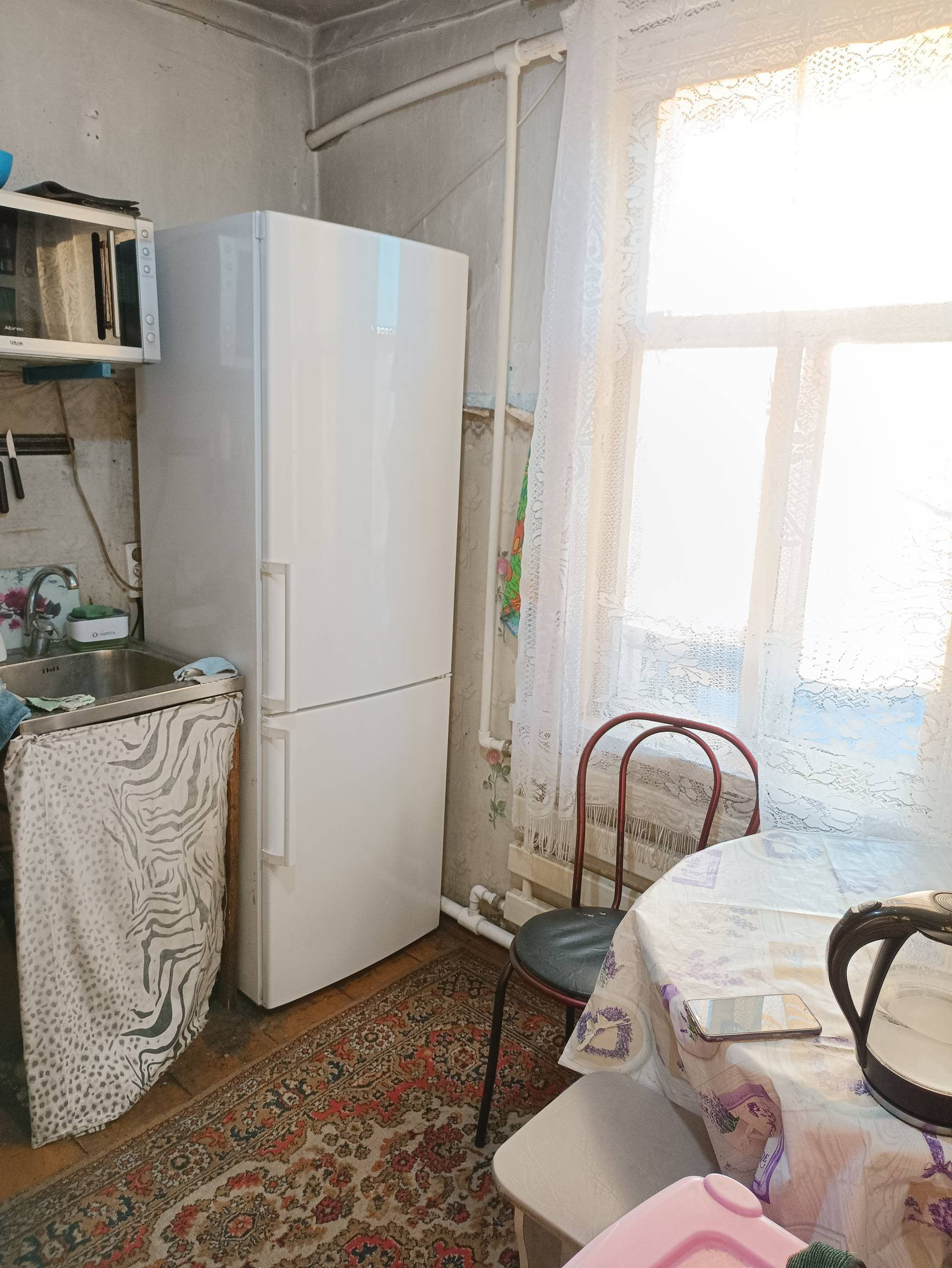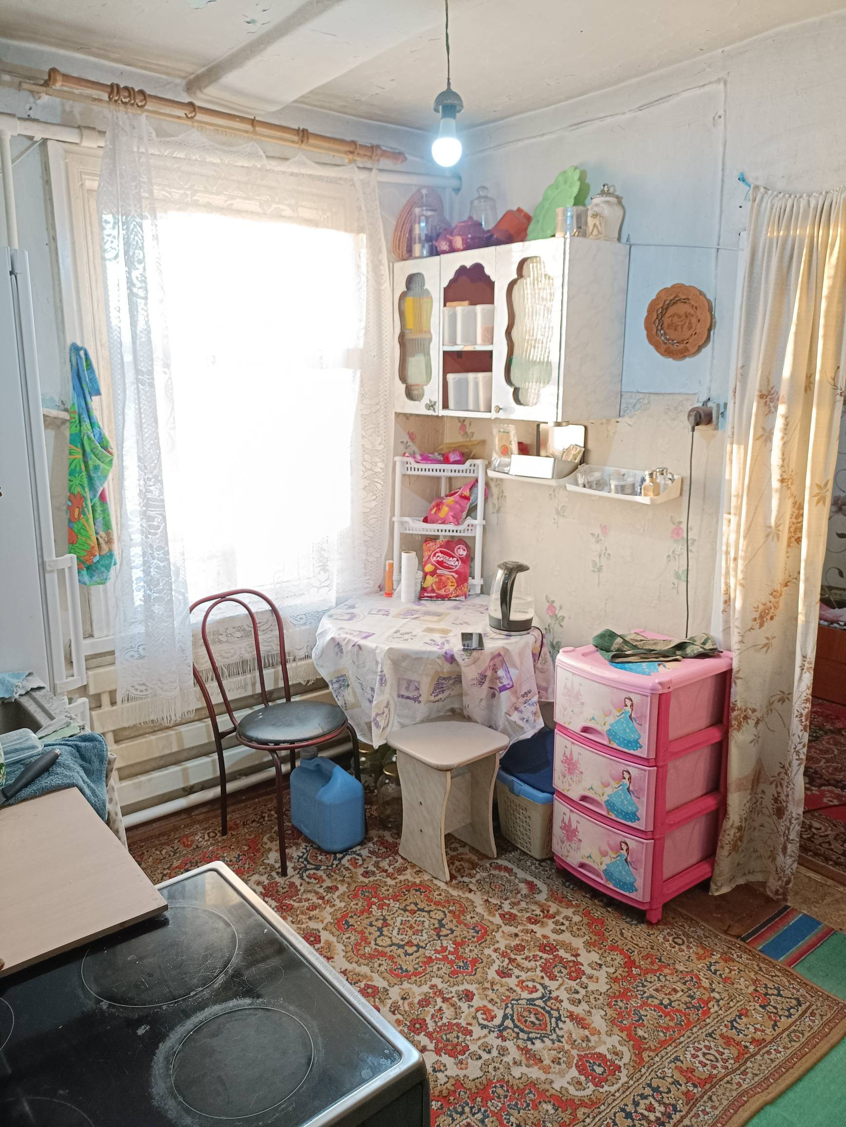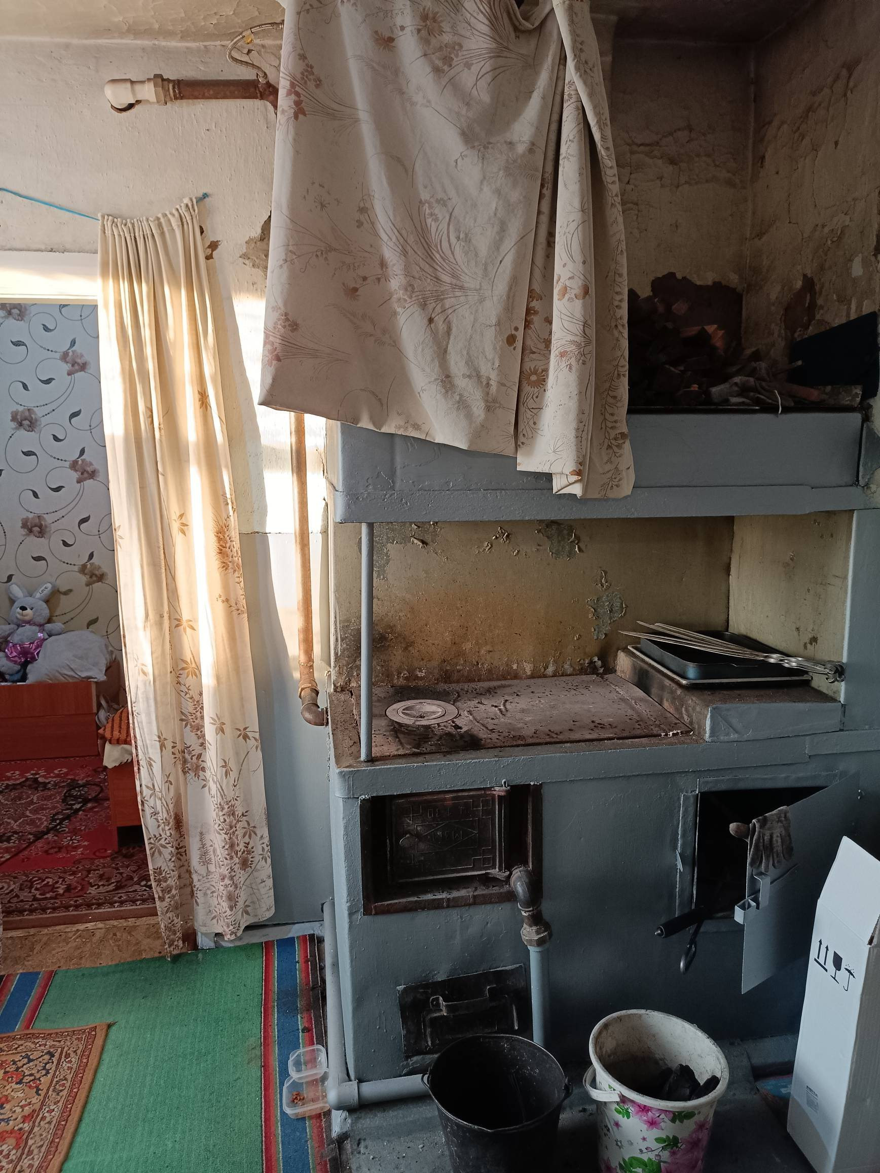 Отопление печное, под каждым окном радиаторы.