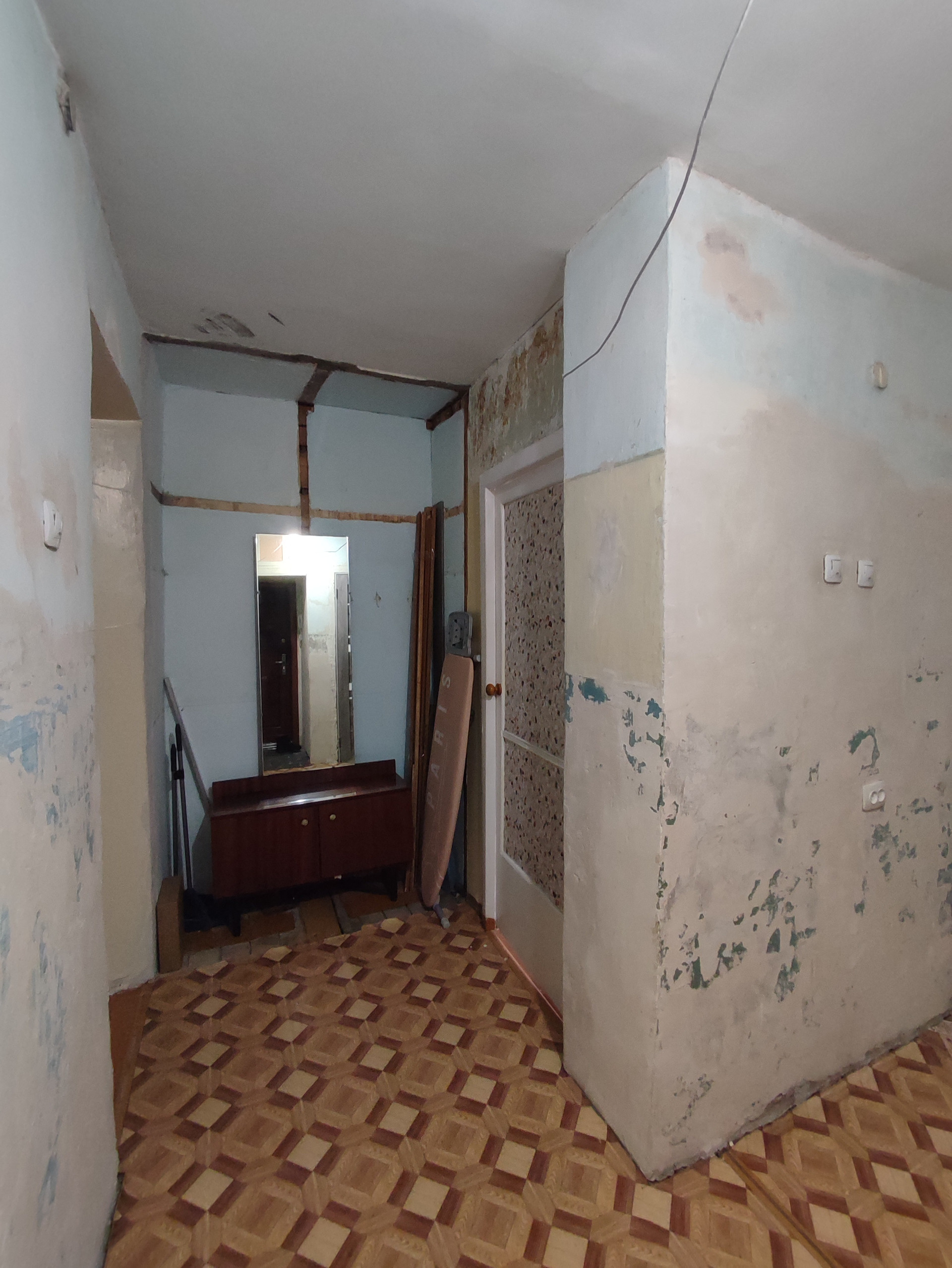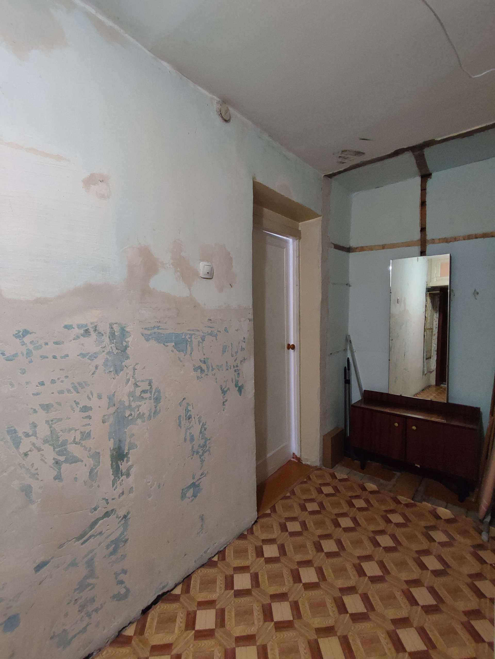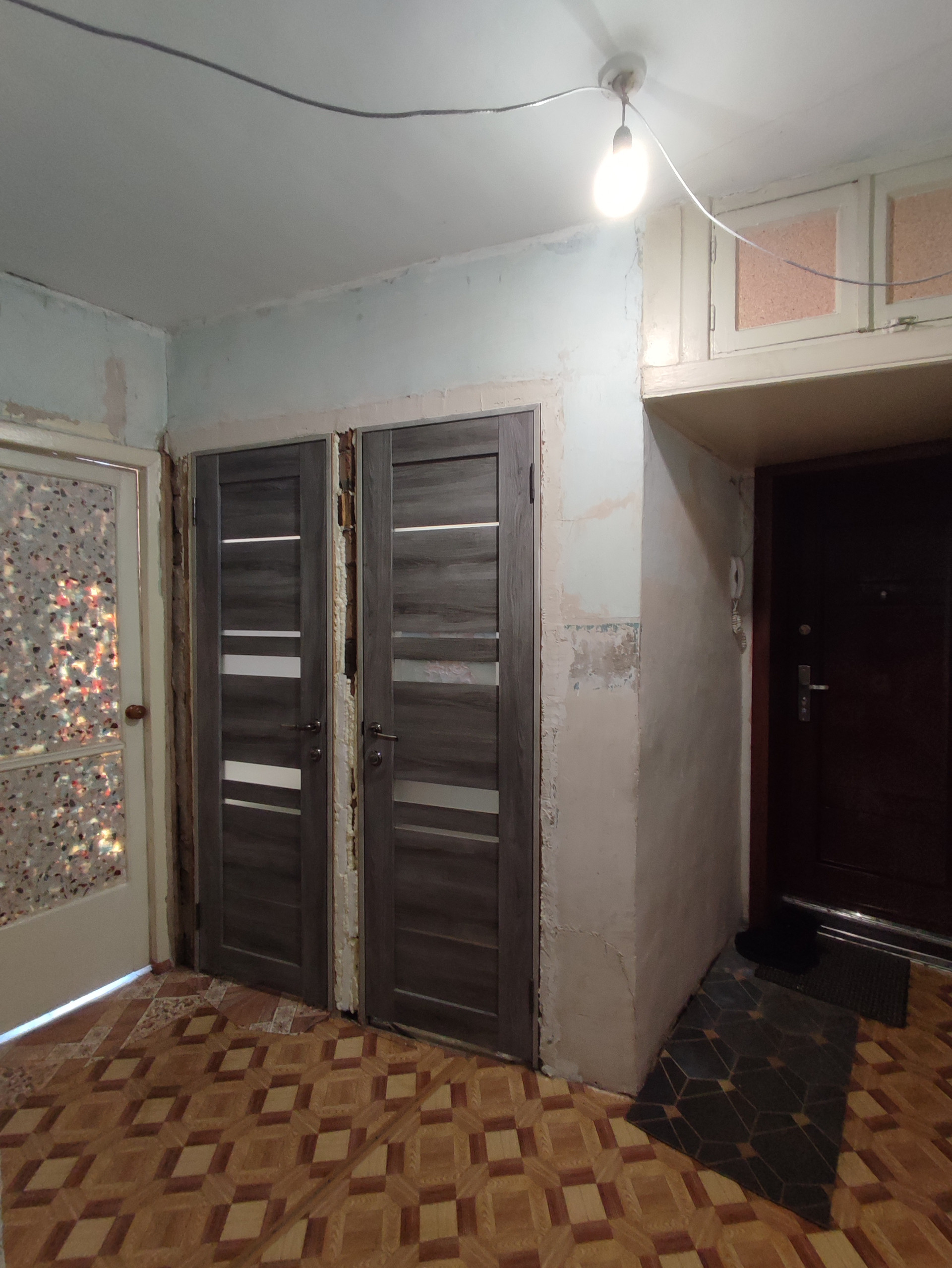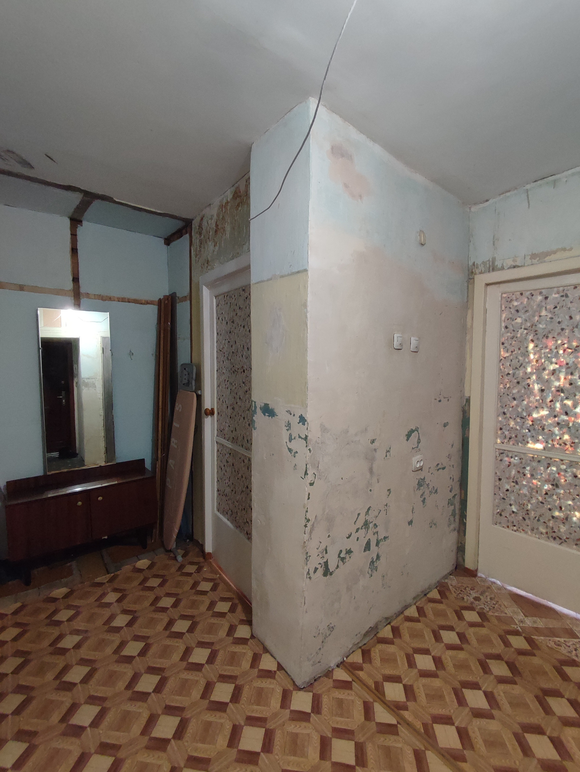 Квартира после косметического ремонта. Выровнены стены,   натяжные   потолки, счётчики на воду, сантехника поменяна.  Установлены пластиковые стеклопакеты. Балкона нет, есть вместительная гардеробная. Хорошая входная дверь.
