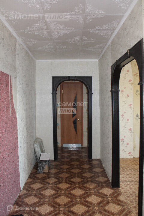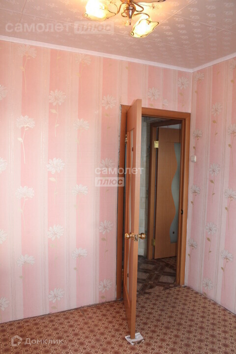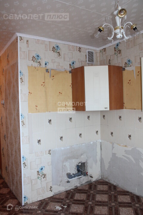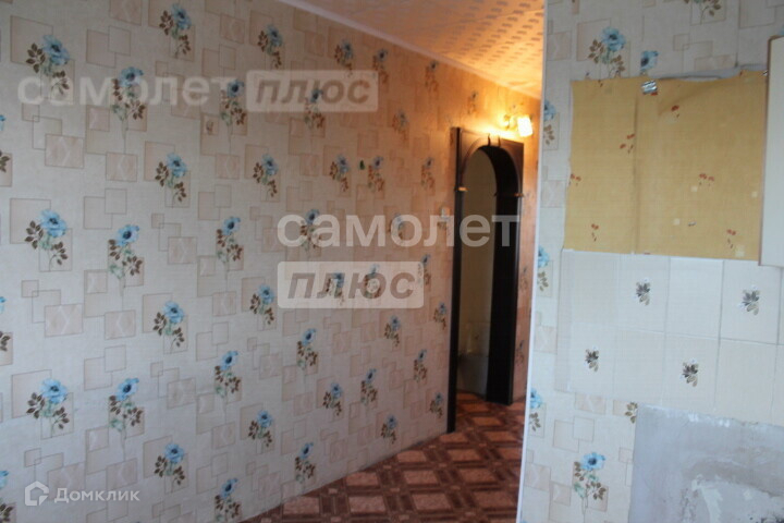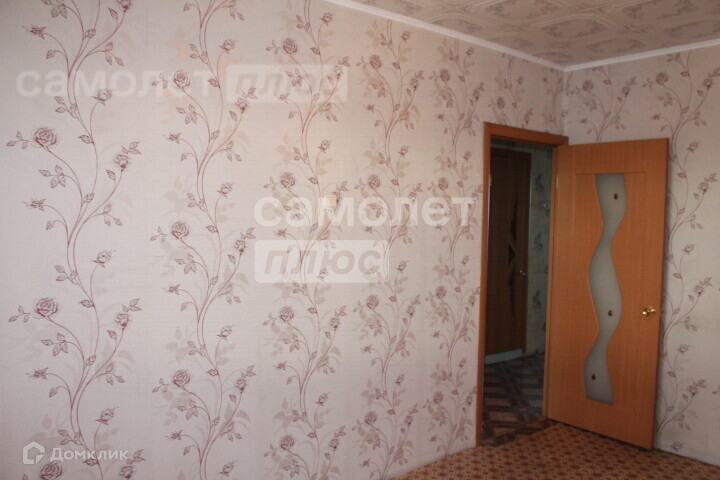В комнатах и кухне, наклеены обои, на полу линолеум, потолок обклеен потолочной плиткой.