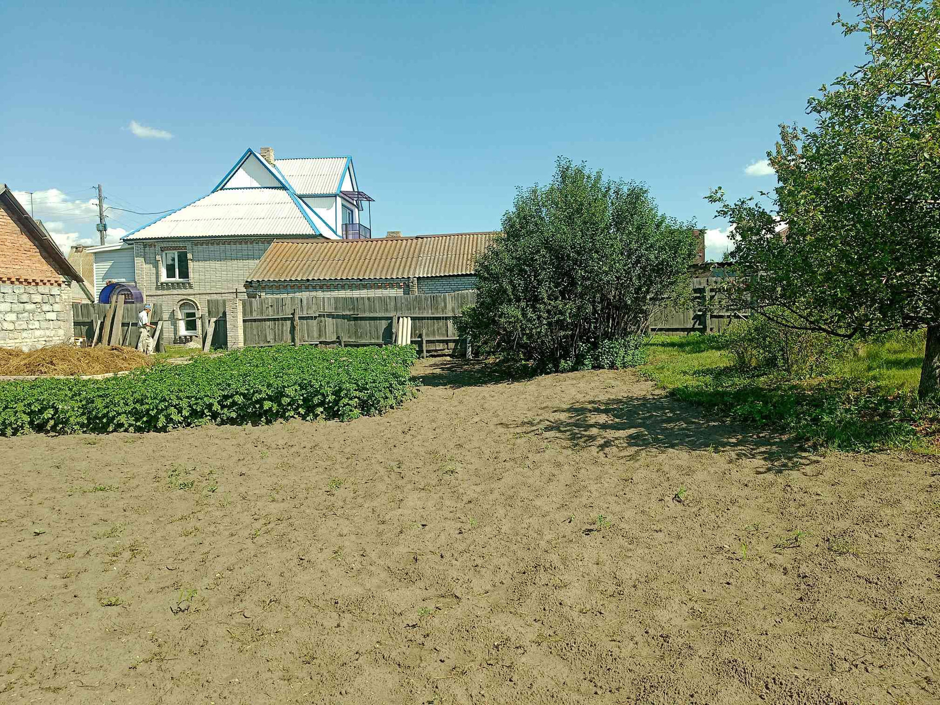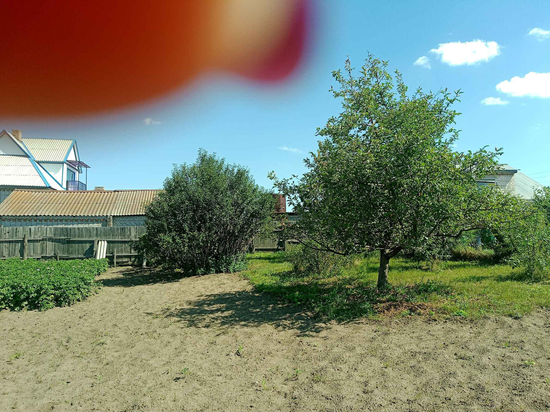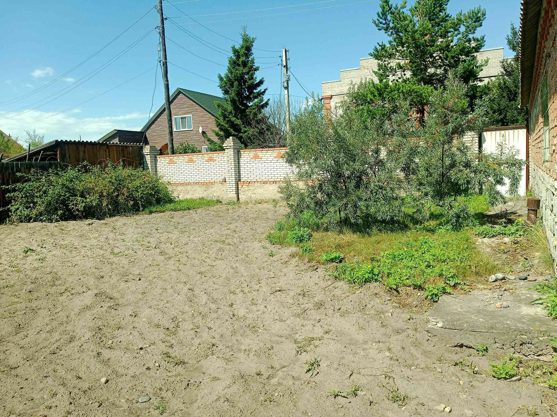 участок в собственности, находится в жилом микрорайон, рядом бор.На участке построен гараж 5х7, времянка 3х5, погреб из натурального камня (плитняка), лаз по ступенькам,  плодоносящий сад.