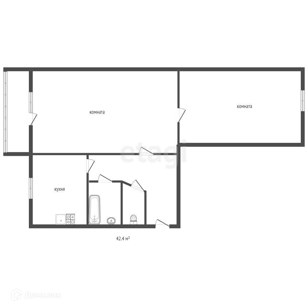 Общая площадь 42.4 м2