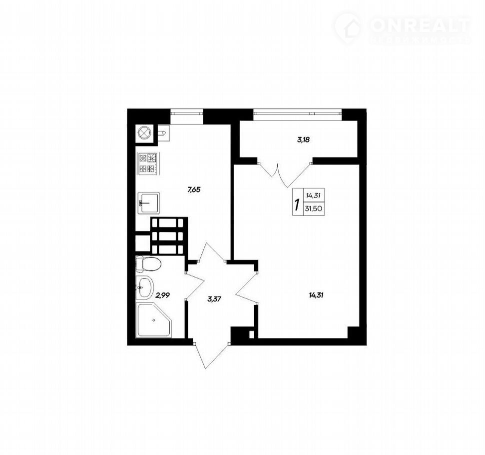 Общая площадь 31.5 м2