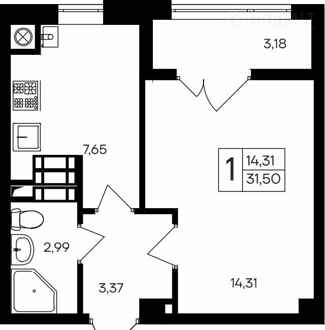 Общая площадь 31.5 м2