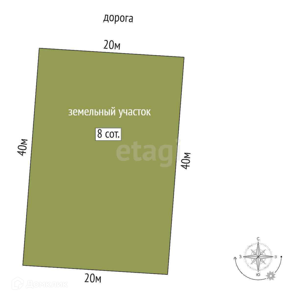 Размеры участка - 40 м. х 20 м. х 40 м. х 20 м.