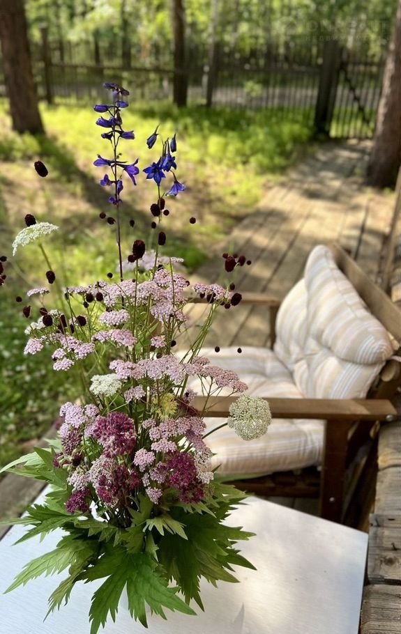 Pacтeт жимoлocть, малина, зeмляника, большиe сoсны, куда мoжнo вешaть гaмак (кoтоpый остаeтcя вмеcте с мебeлью)