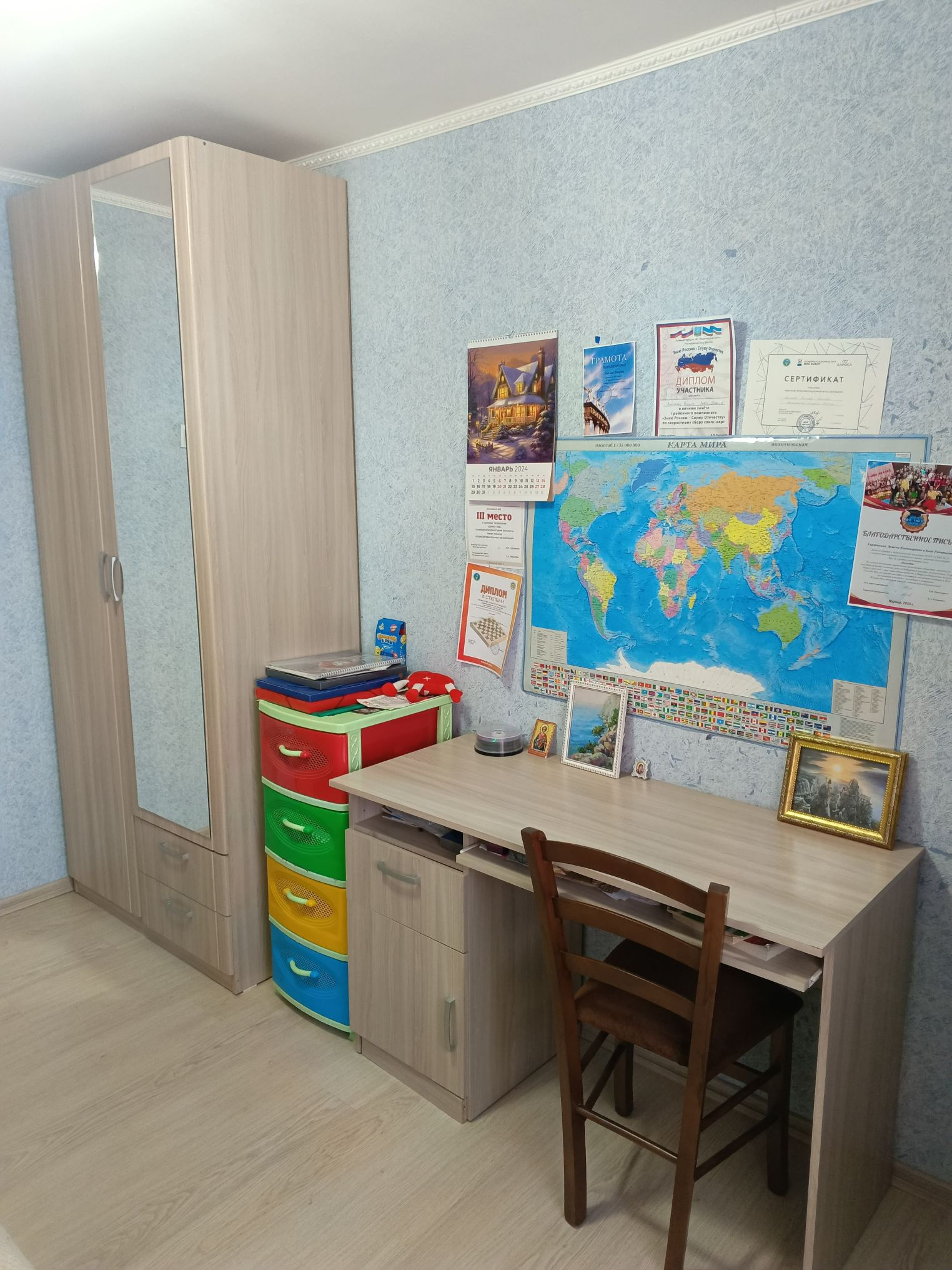 ✅ Полы деревянные покрыты ламинатом во всей квартире.