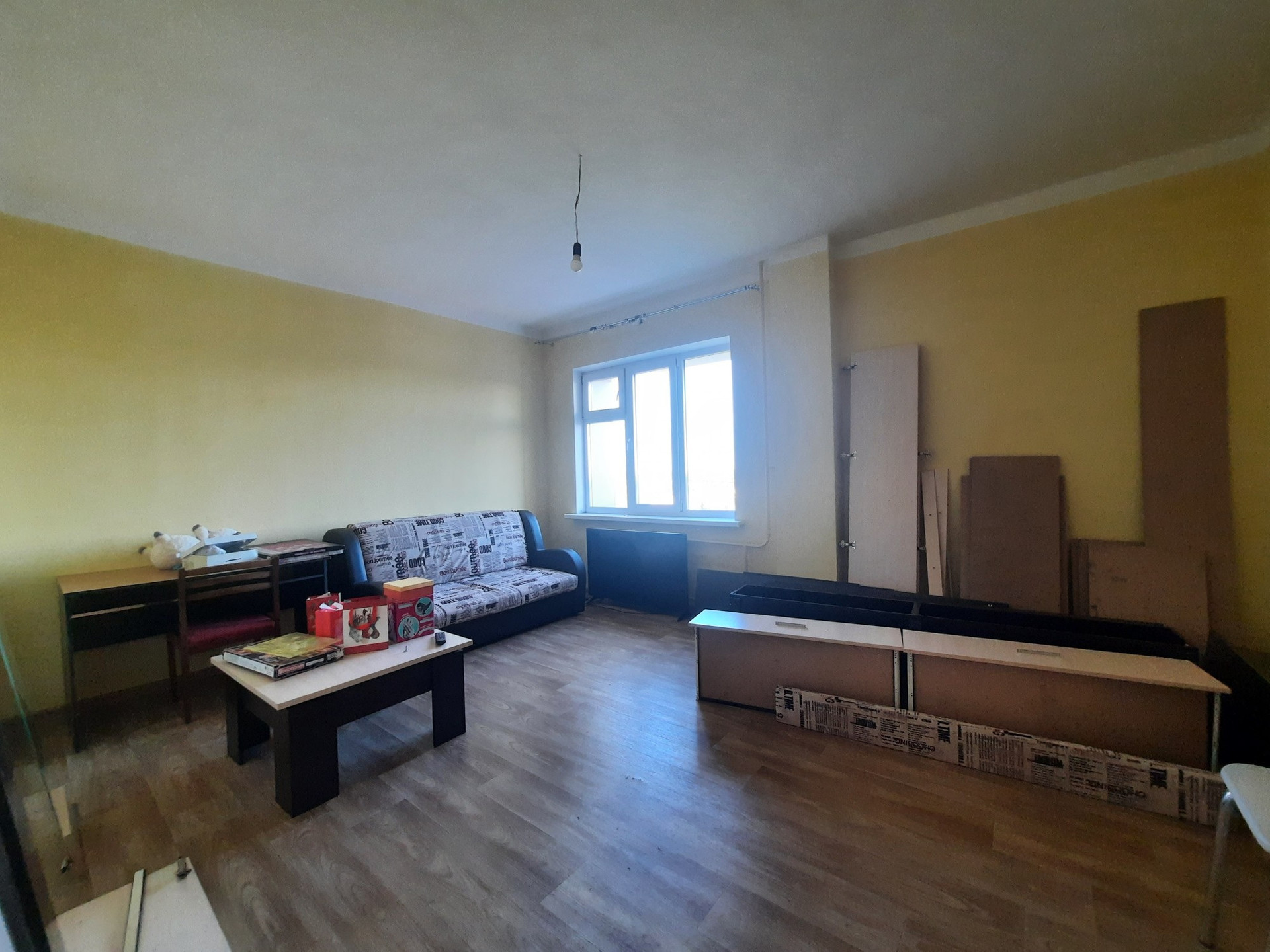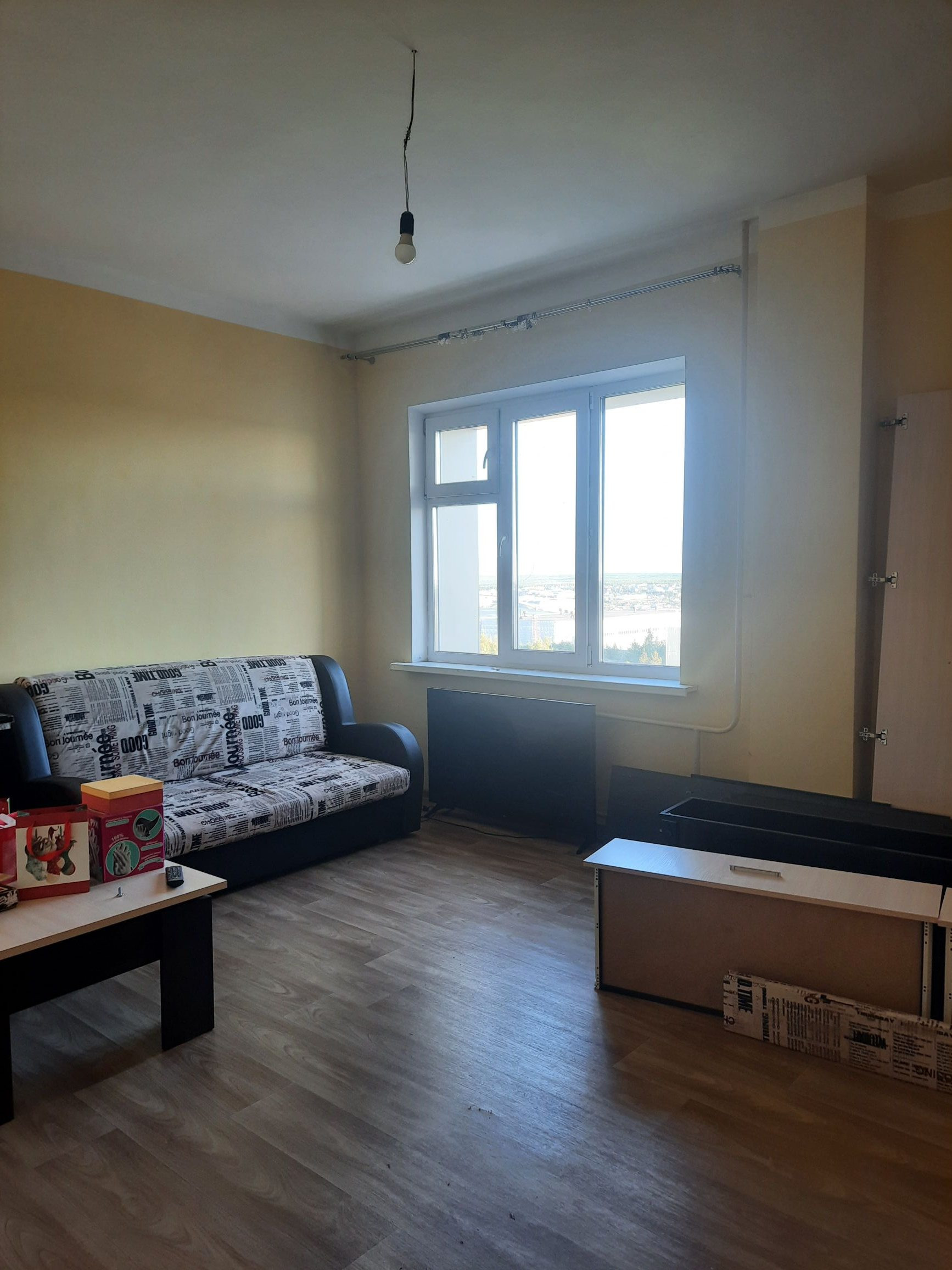 Квартира имеет продуманную планировку: жилая площадь составляет 33.5 квадратных метра, а кухня — 11.1 квадратных метров. Также имеется большая лоджия, откуда открывается вид на улицу. Внутри выполнен косметический ремонт, что позволит новым владельцам сразу начать комфортное проживание без дополнительных вложений. Санузел раздельный.