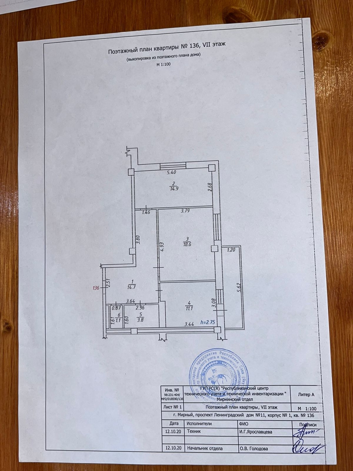 Высота потолков 2.75 м