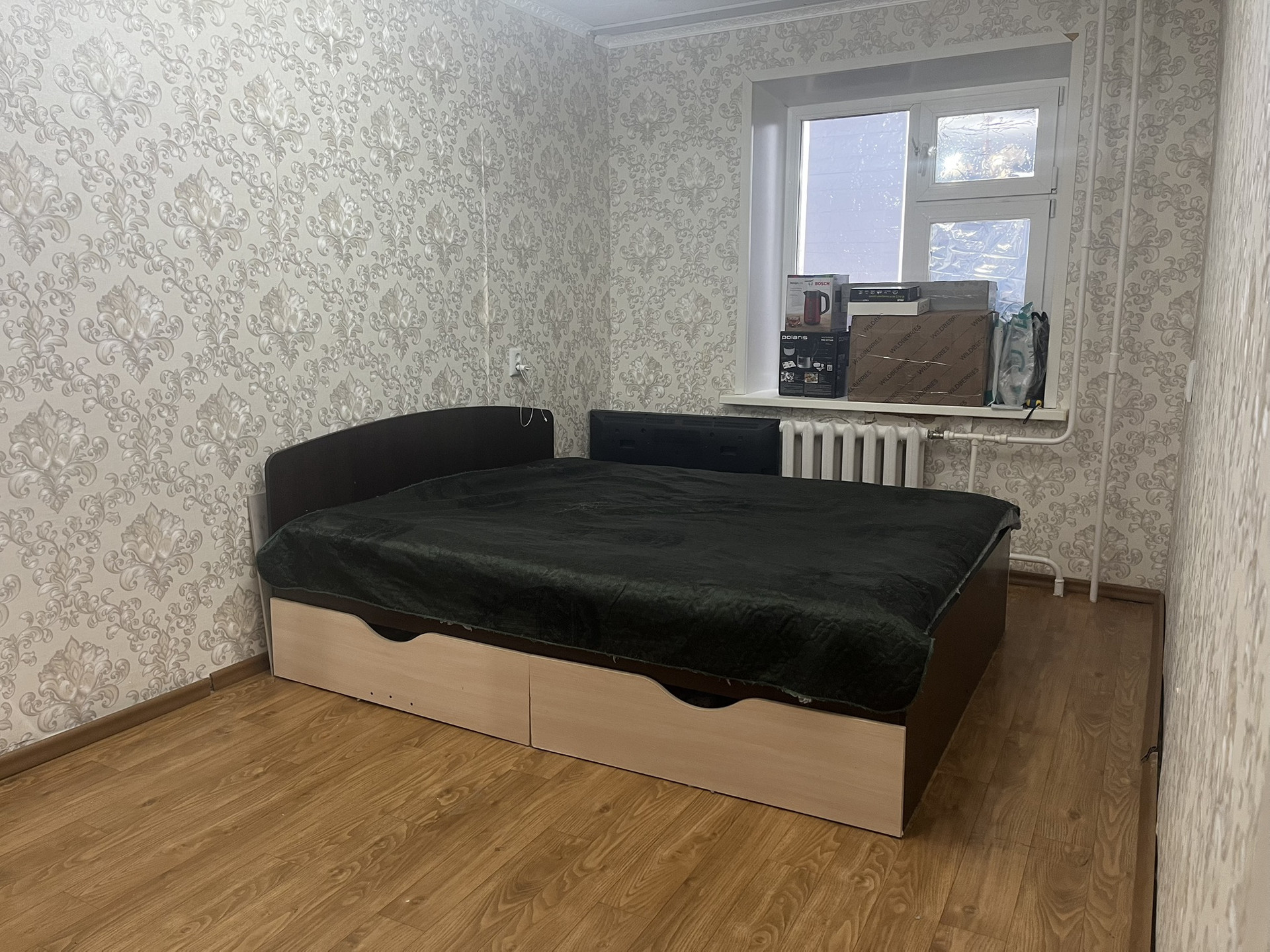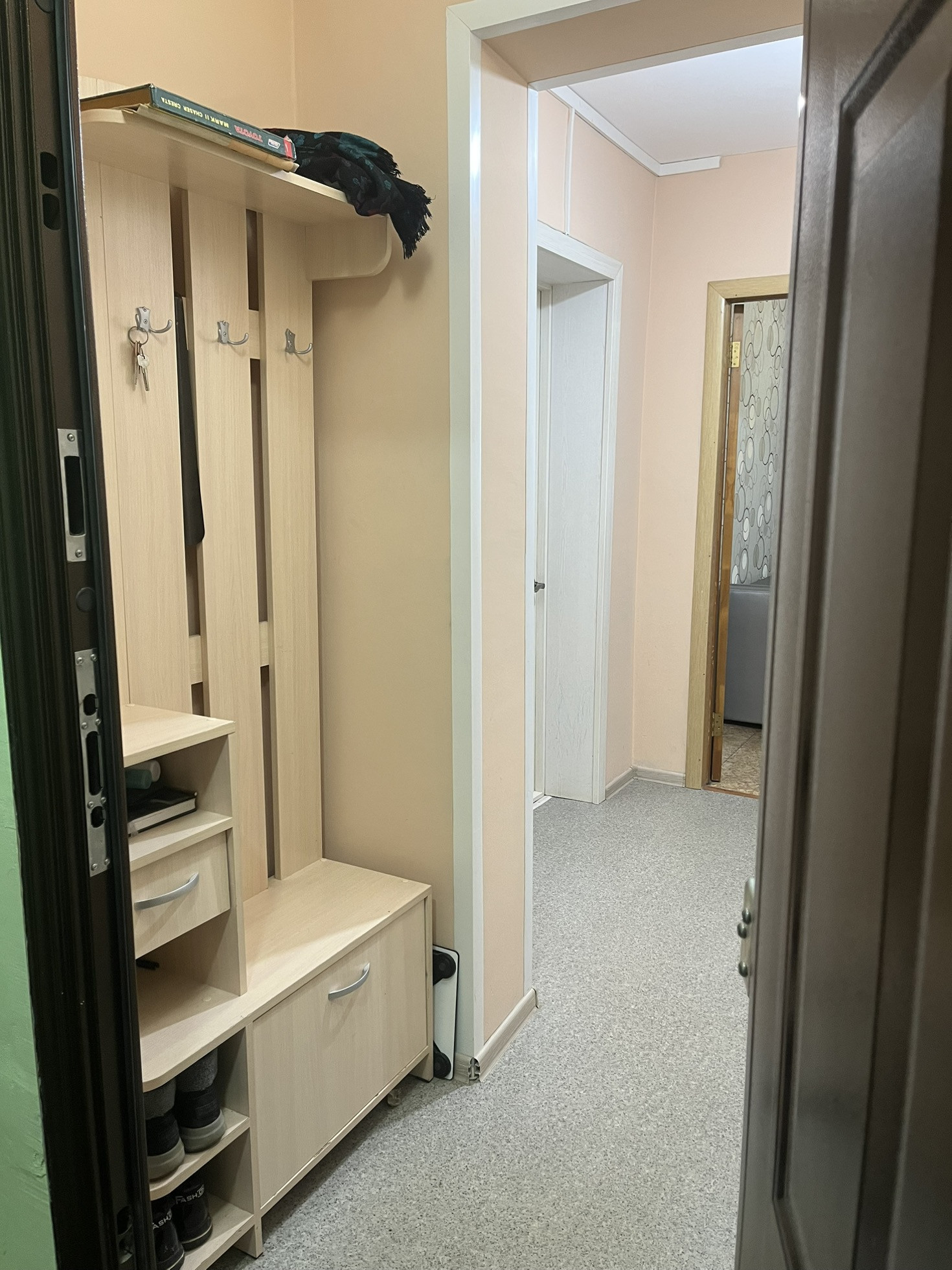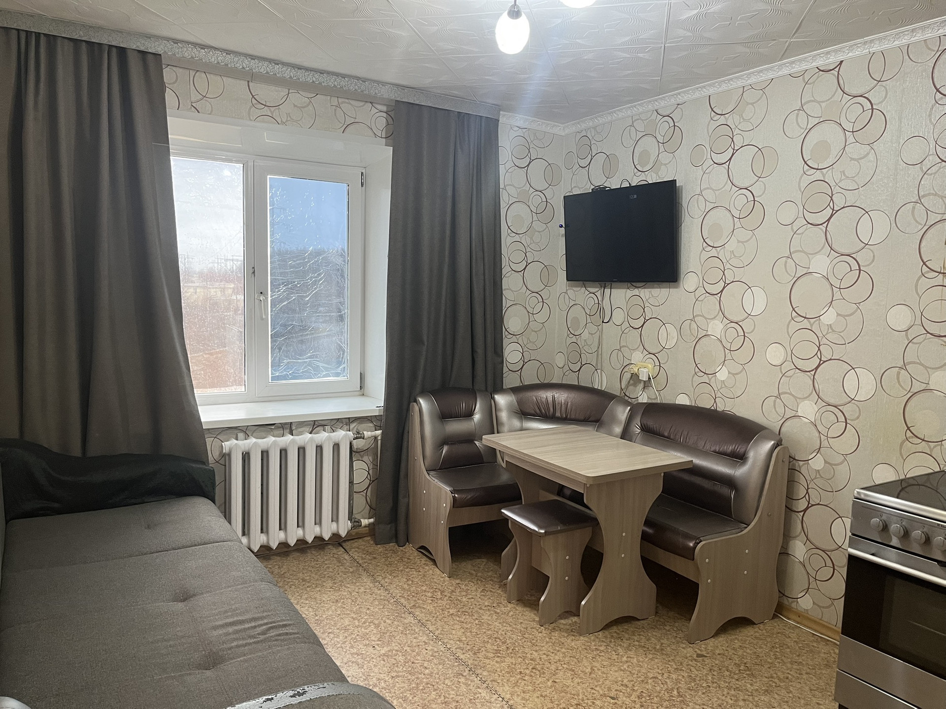 В квартире остаётся корпусная мебель (новая кух.гарн, кух.зона, 2хсп.кровать, шкаф, прихожая, диван).