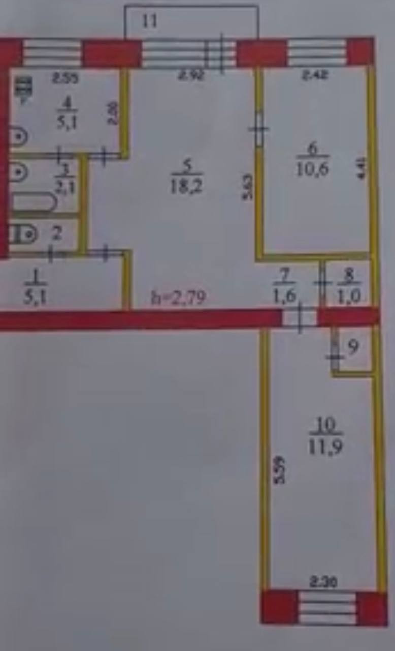 Высота потолков 2.79 м