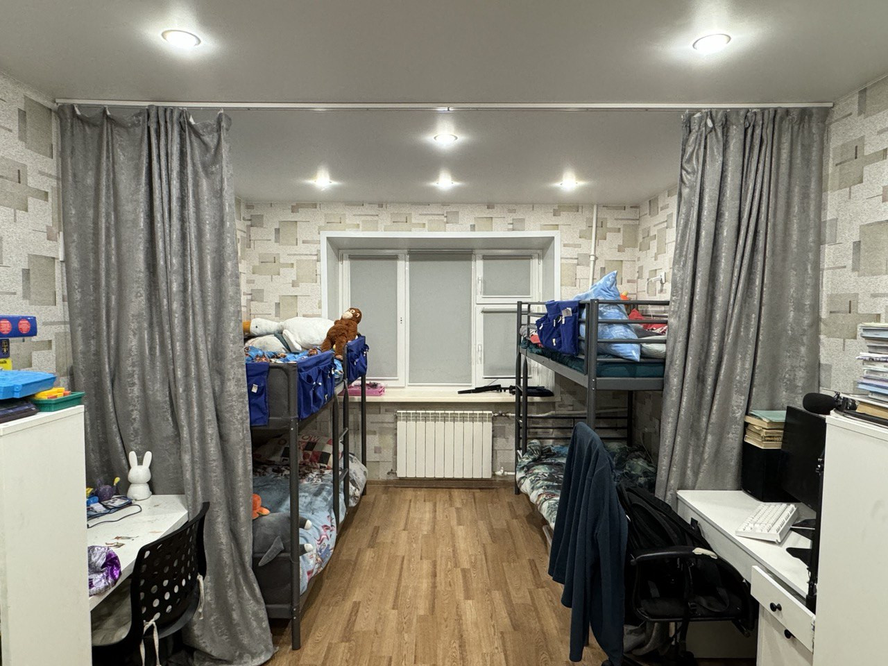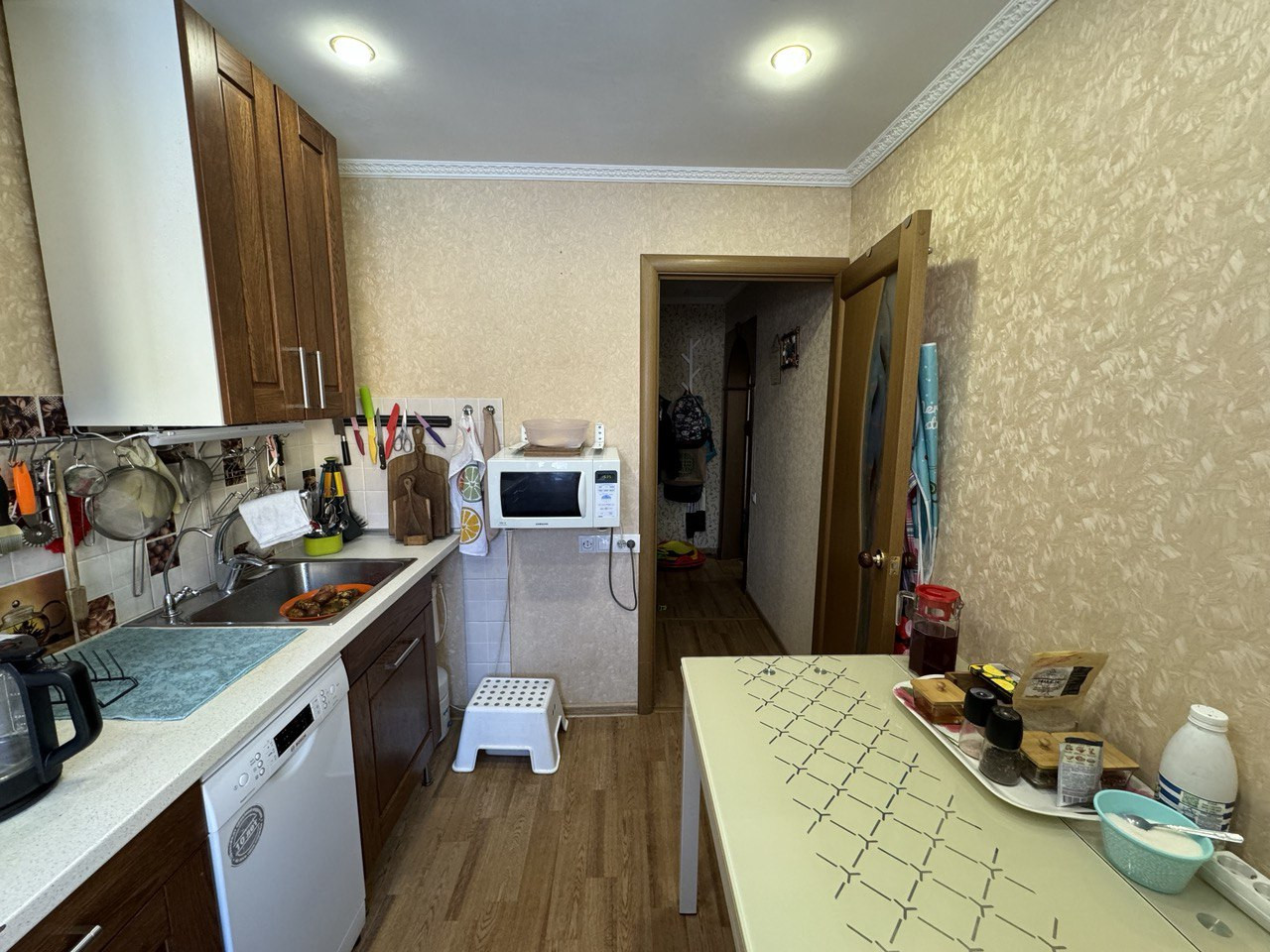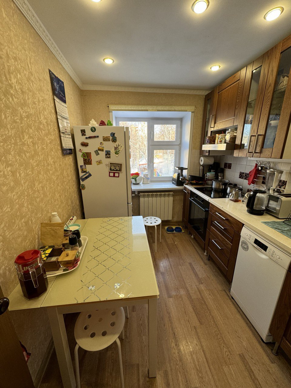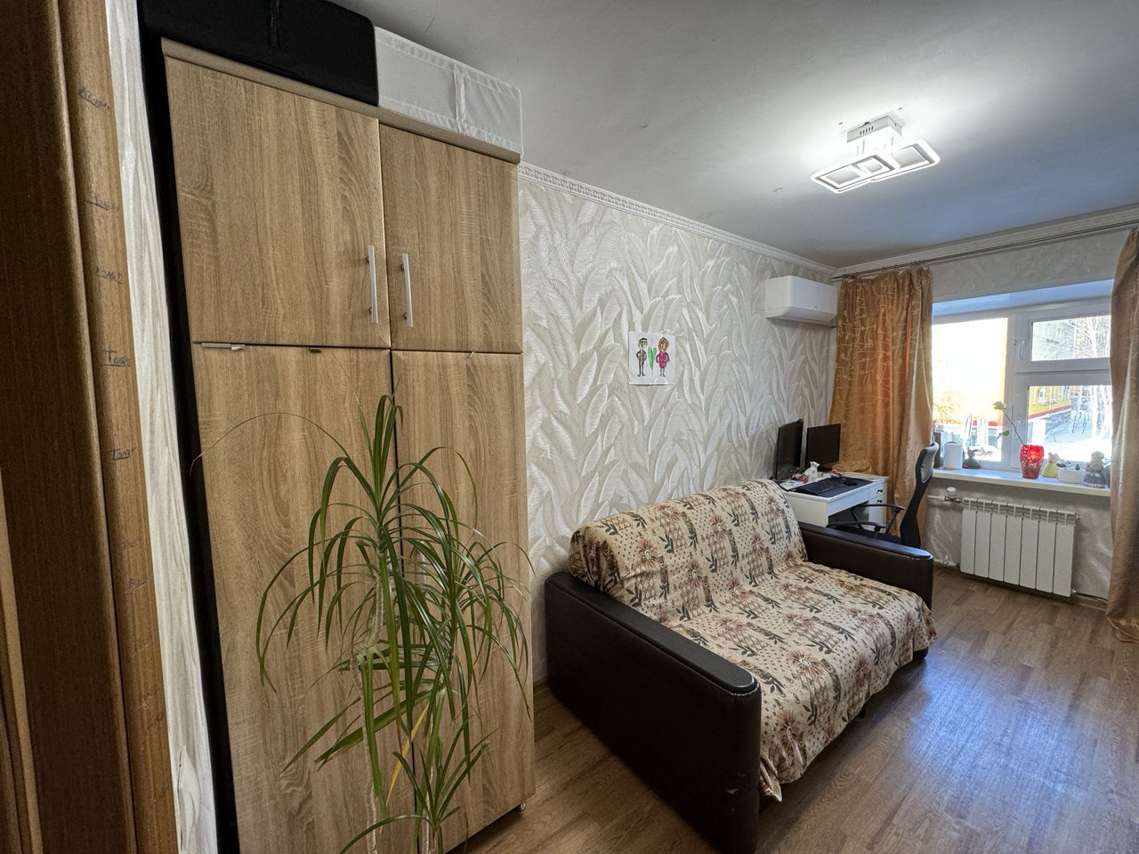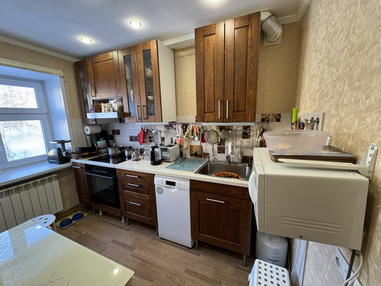 В квартире сделан качественный ремонт: идеально выравнены стены во всей квартире, заменена полностью проводка, в каждой комнате достаточно 220 розеток. В большой комнате натяжной потолок, в кухне и прихожей потолок из гипсокартона, остальный комнатах потолок выровнен и побелен идеально. Полы деревянные, выровнены фанерой, на полу линолеум. Установлены во всей квартире качественные двери (из натурального массива дерева) и очень хорошая входная дверь. Установлено видеонаблюдение. Туалет и ванна полностью в современном кафеле. Ванна чугунная. Потолки в ванне и туалете реечные. В квартире две кладовые. В квартире установлен кондиционер (летом 2023), накопительный водонагреватель на 30 литров (летом 2023). В двух комнатах диваны, шкафы, в большой комнате двухъярусная икеевская кровать и 4 компьютерных (письменных стола, куплены летом 2023) и большой шкаф (куплен летом 2023). Во всей квартире заменены трубы, включая систему отопления, установлены евробатареи. В квартире очень тепло. Установлены разумеется водосчетчики. Новый электросчетчик. Кухня икеевская. Установлен фильтр с обратный осмосом атол, с накопительным баком, посудомоечная машина Bosch, варочная панель и духовой шкаф gorenje, куплены летом 2023, вытяжка Bosch, холодильник Samsung инверторный (куплен осенью 2022 года), хороший раскладной стеклянный стол. стиральная машинка. В квартире остается полностью вся мебель, и перечисленная выше техника.