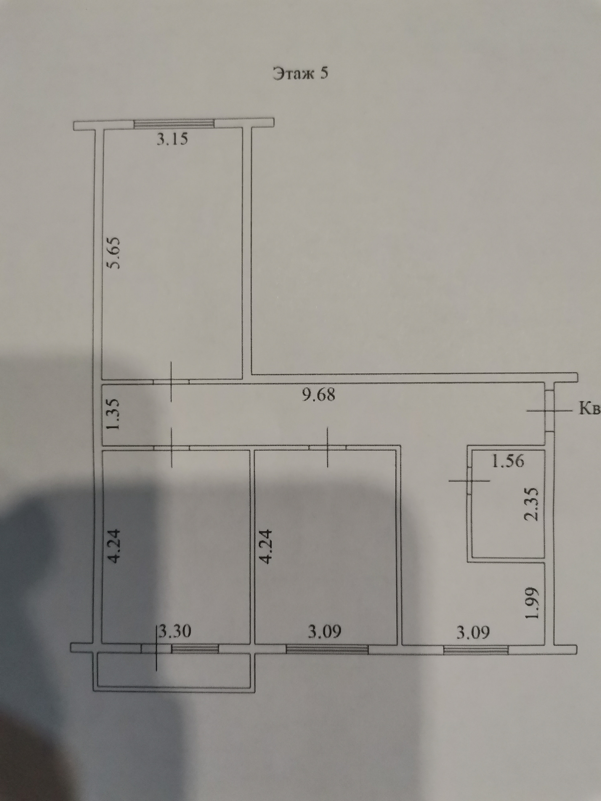 Жилая площадь 42.8 м2