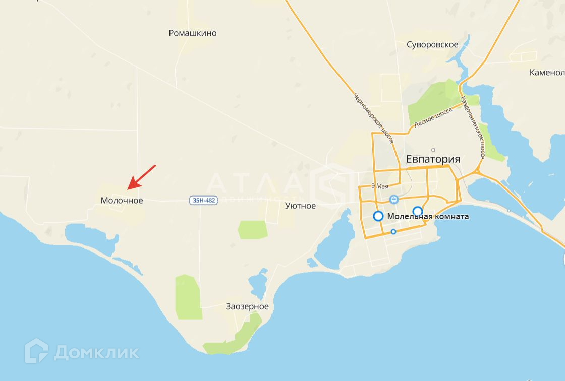 До г Евпатория 15 км.