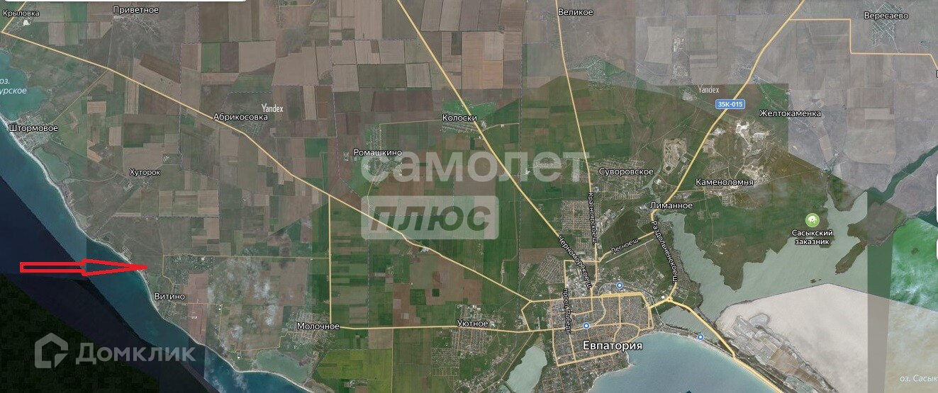 Участок в Витино, на берегу Аирчинского озера, в 300 метрах от побережья Чёрного моря. Перспективный район с развитой инфраструктурой и знаменитыми Сакскими лечебными грязями. Море находится в шаговой доступности. Участок размежеван, есть хорошие подъездные пути.