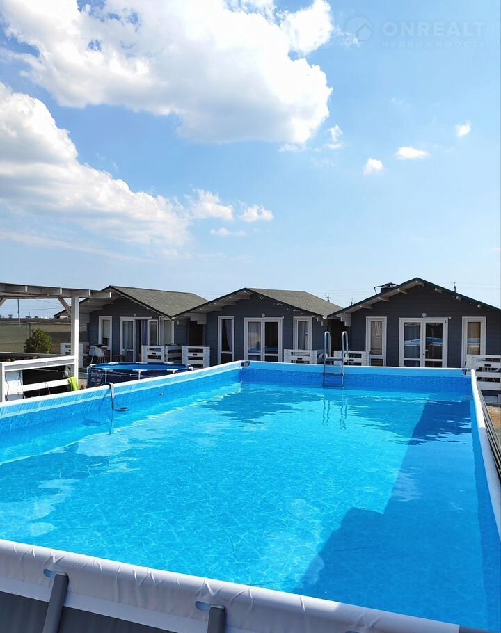 На территории 4 отдельностоящих деревянных домика, детский бассейн, большой взрослый (10м на 5м) и мангальная зона.