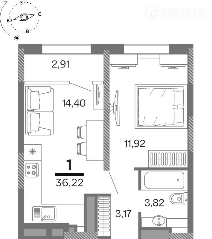 Количество комнат 1