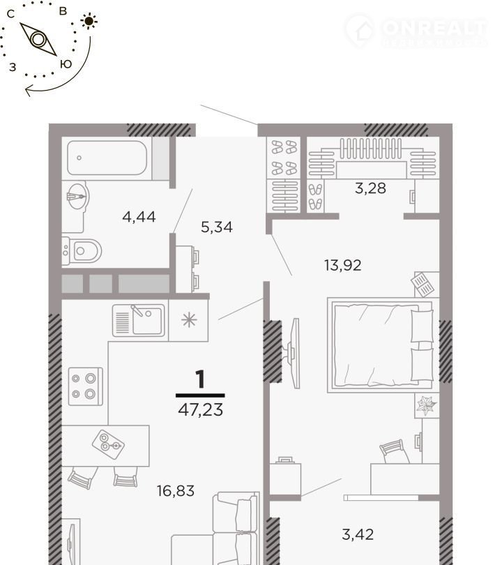Количество комнат 1