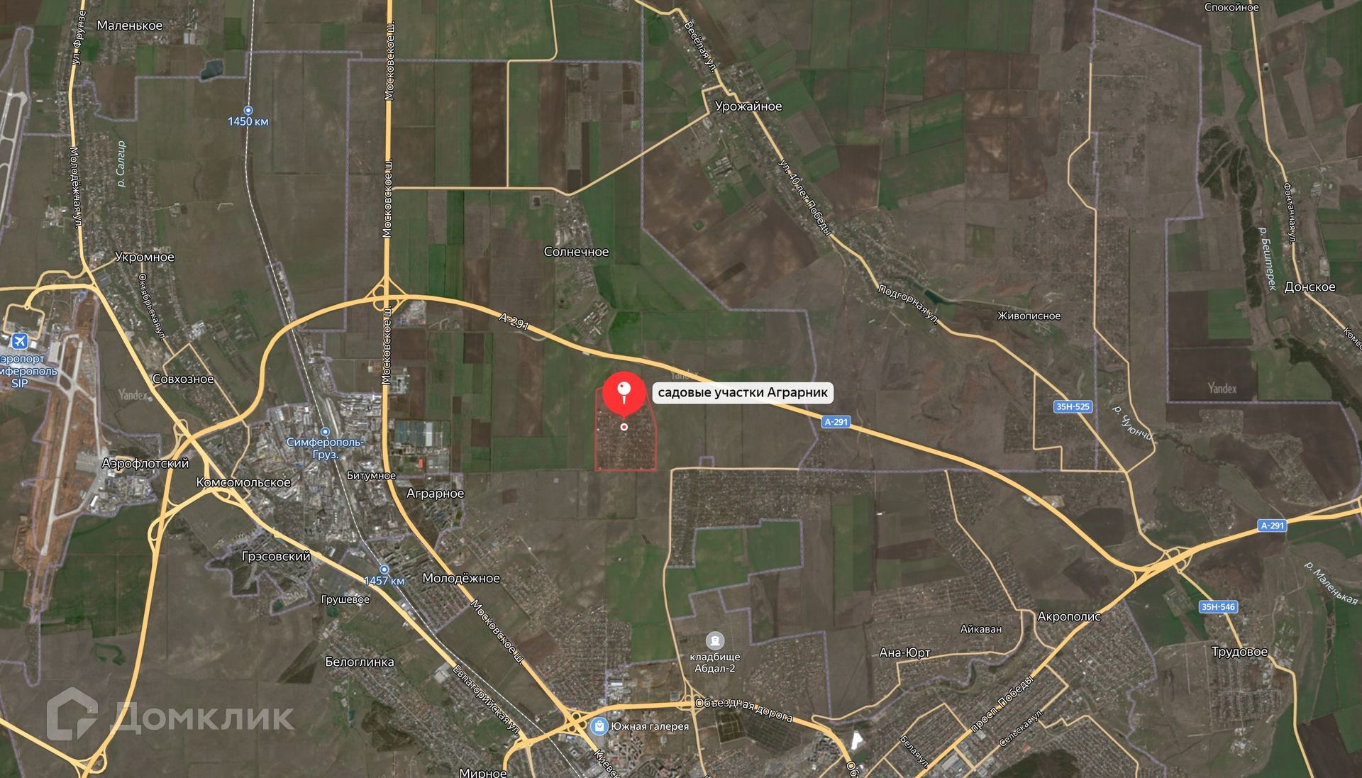 Аграрник расположен в 5 км от Симферополя, выезд из города по ул.Куйбышева.