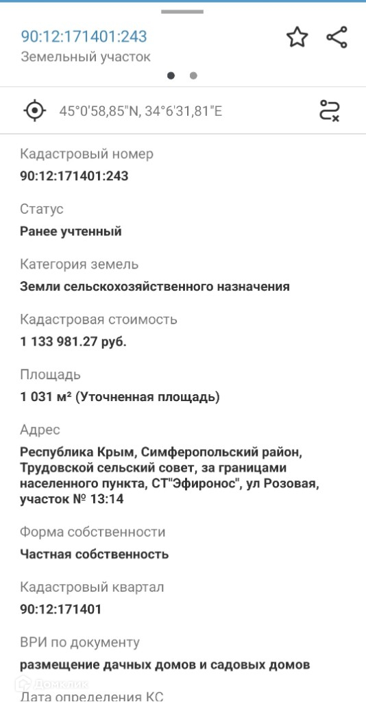 Стоимость недвижимости: