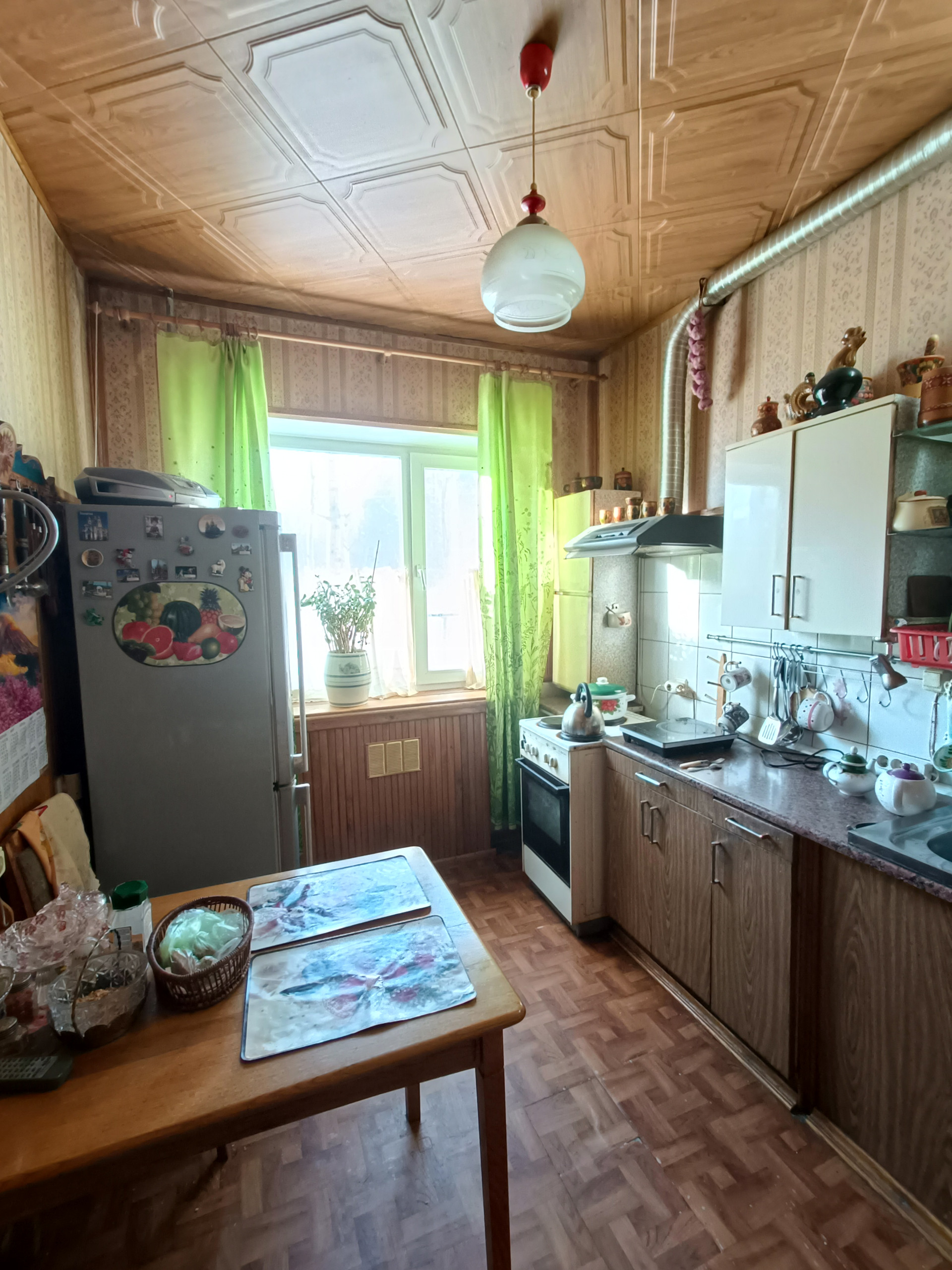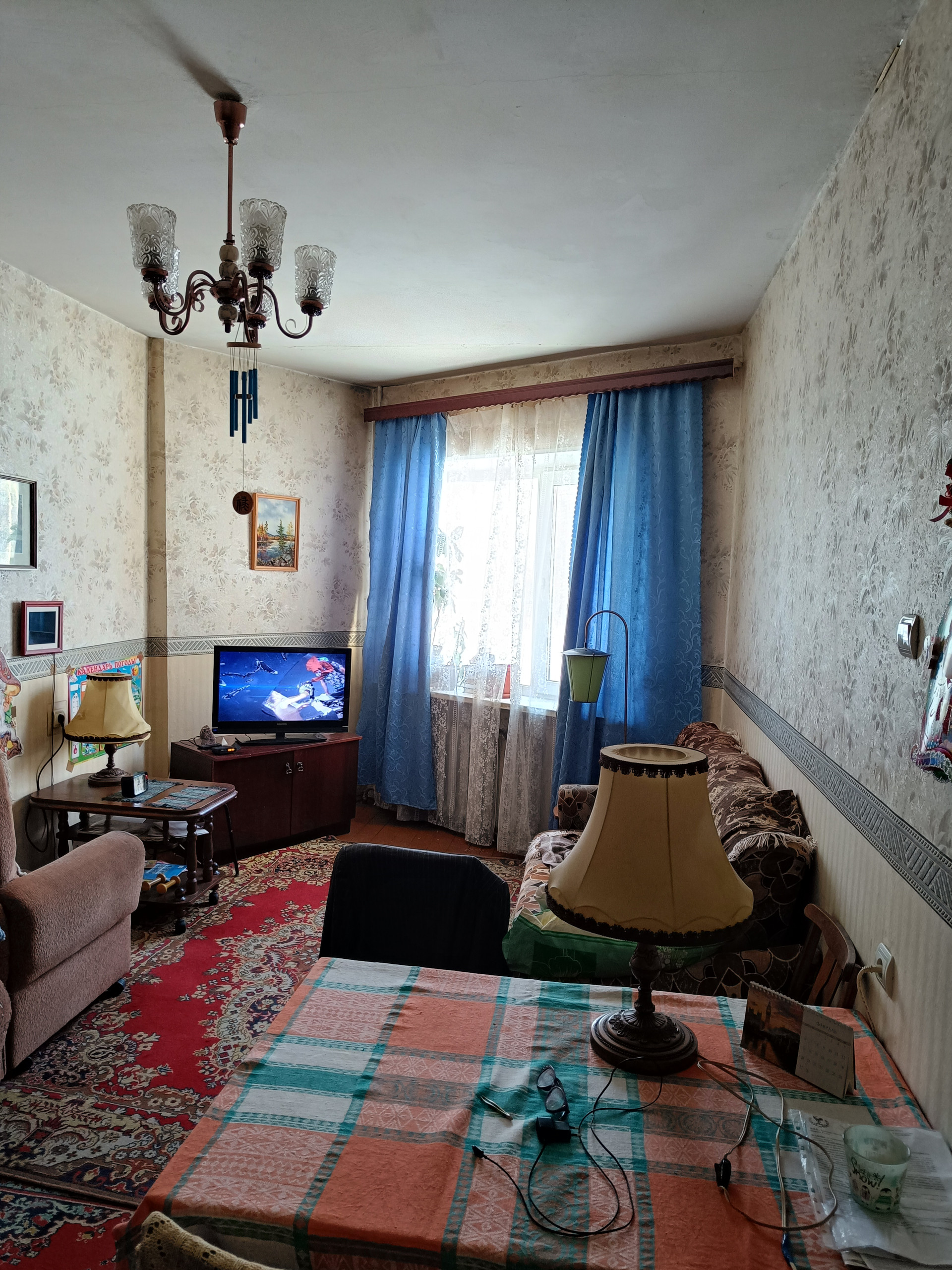 Состояние жилое, чисто-просто. Остается кухонный гарнитур.