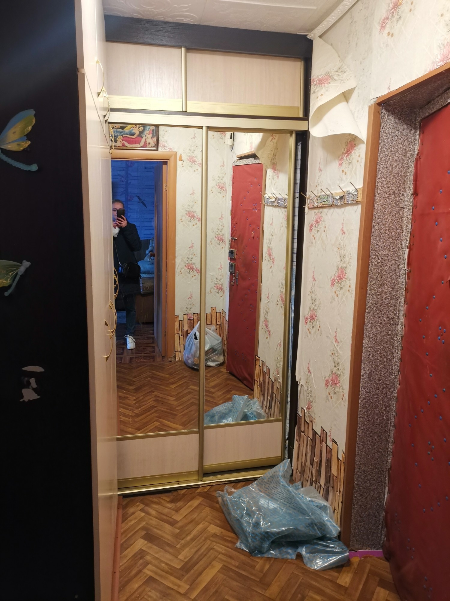 Центр города, установлены стеклопакеты,двойная дверь, встроенный шкаф, мебель и техника частично остаётся.
