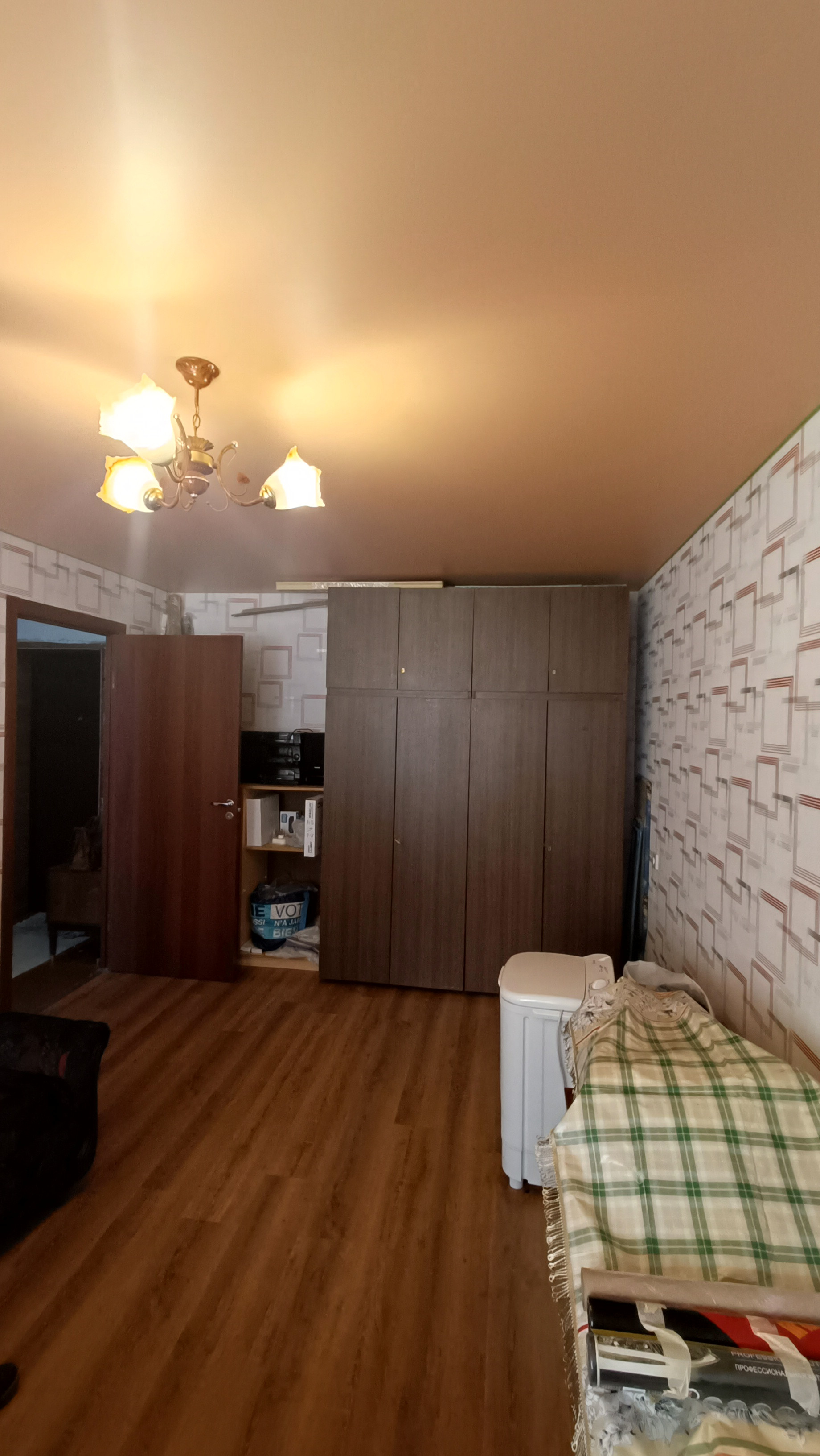 В квартире частично сделан ремонт: натяжной потолок в комнате, подвесной потолок в ванной комнате и на кухне, на полу в комнате и кухне линолеум, заменены межкомнатные и входная двери, установлены стеклопакеты, в коридоре сделан шкаф, Ванная комната: стены и пол - кафель, заменены стояки горячей, холодной воды и канализации, есть водосчетчики, подводка воды по квартире - трубы медные.