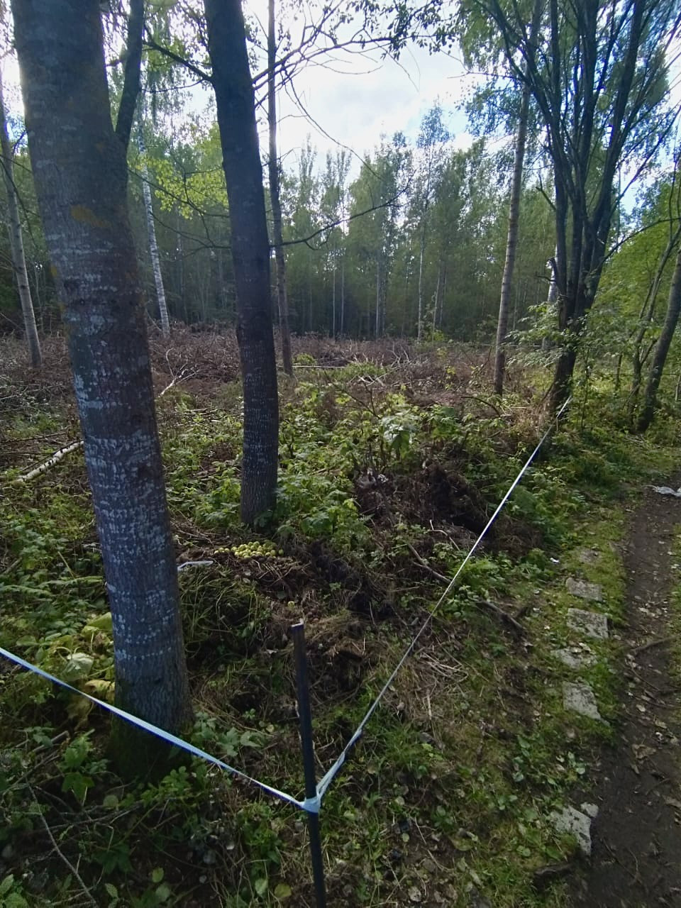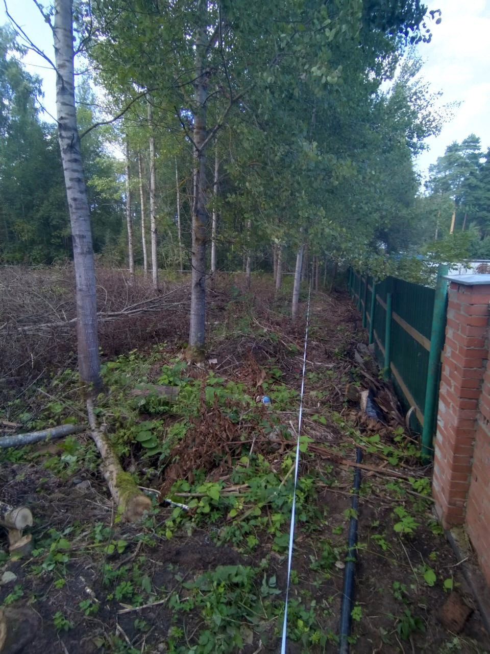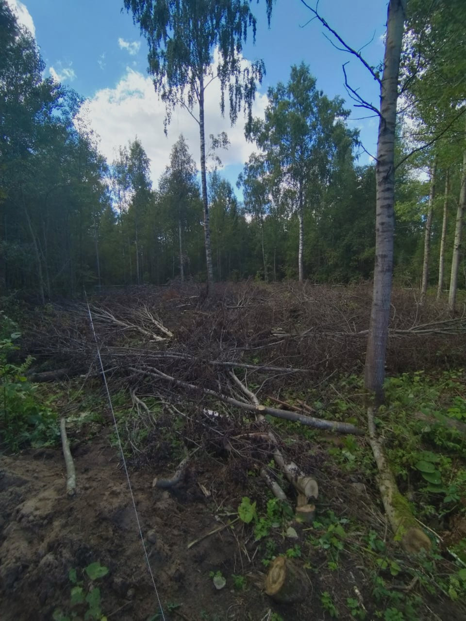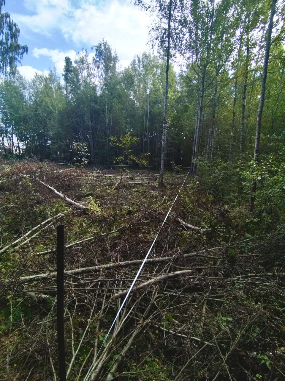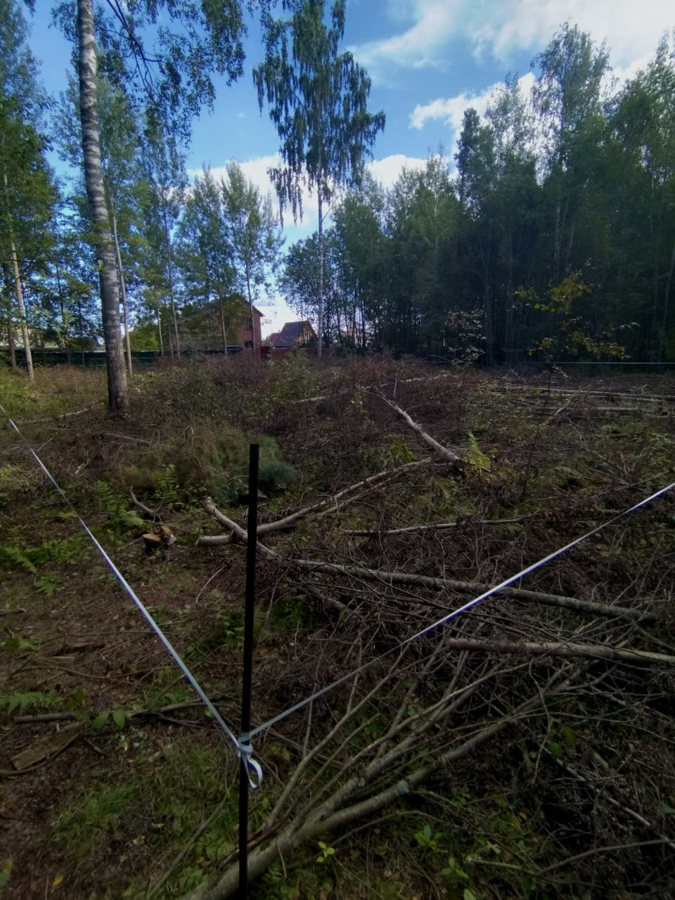 Участок подготовлен к строительству , вырублены деревья .