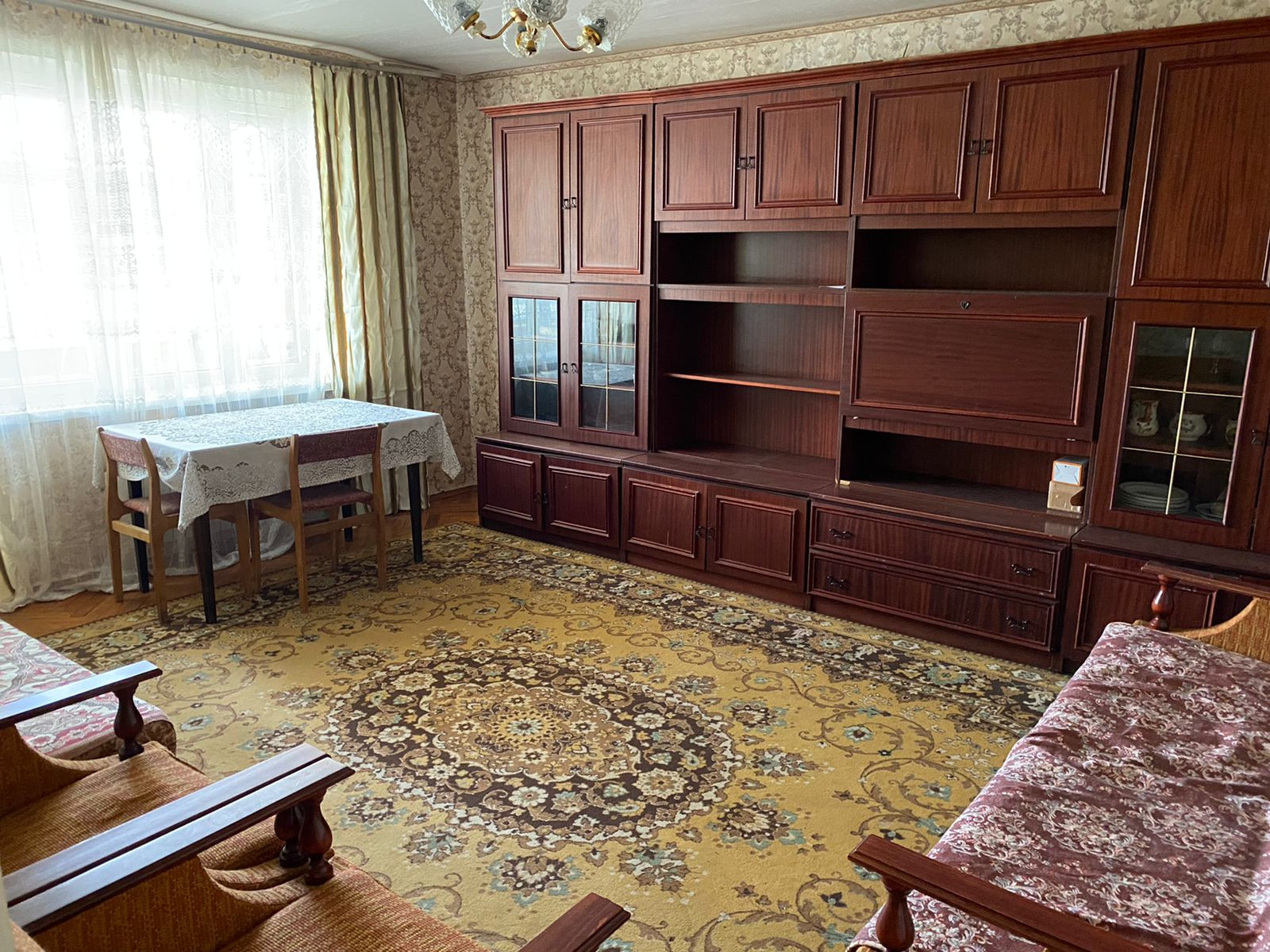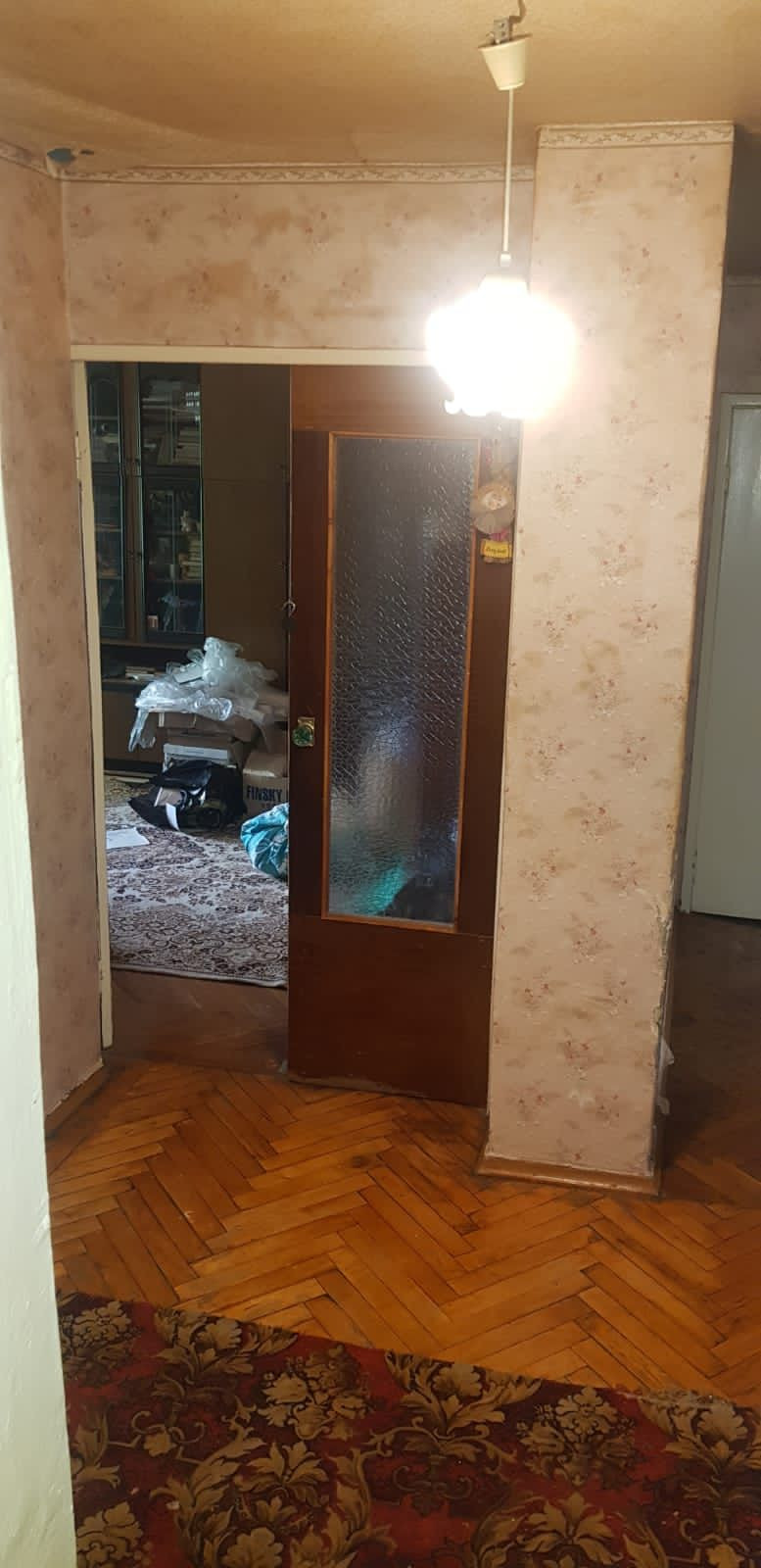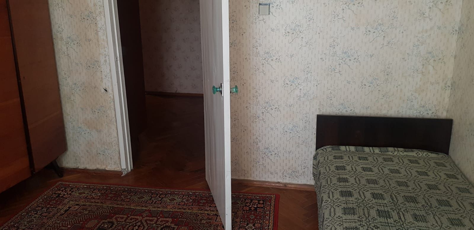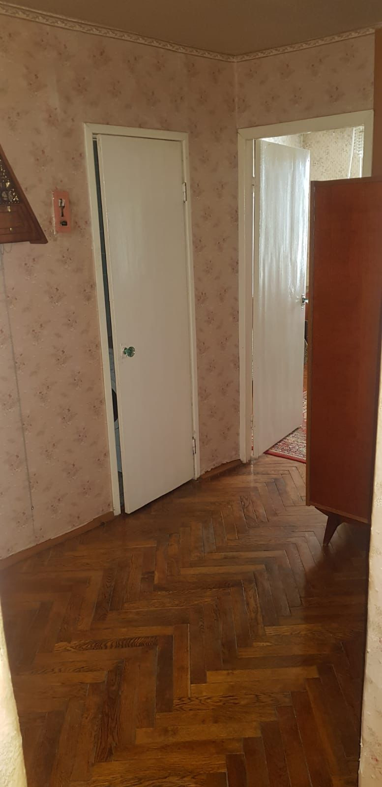 Расположена  на втором этаже пятиэтажного кирпичного дома.  Три комнаты изолированы, с/у раздельный. Горячая вода централизованная, газ.