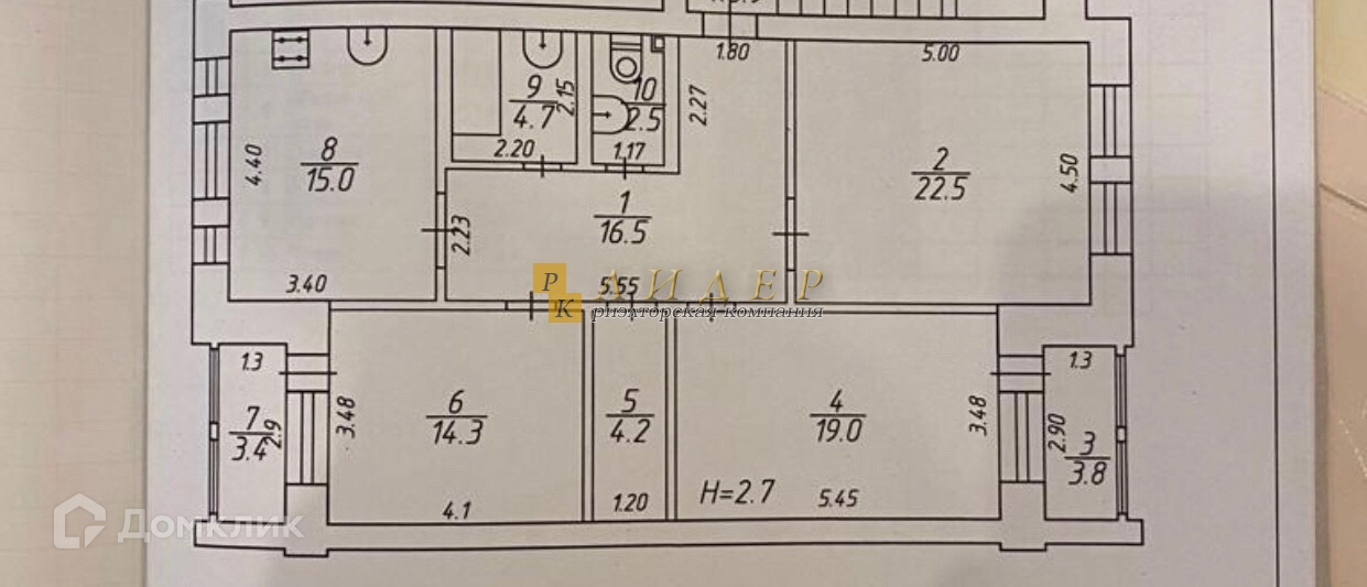 Высота потолков 2.8 м