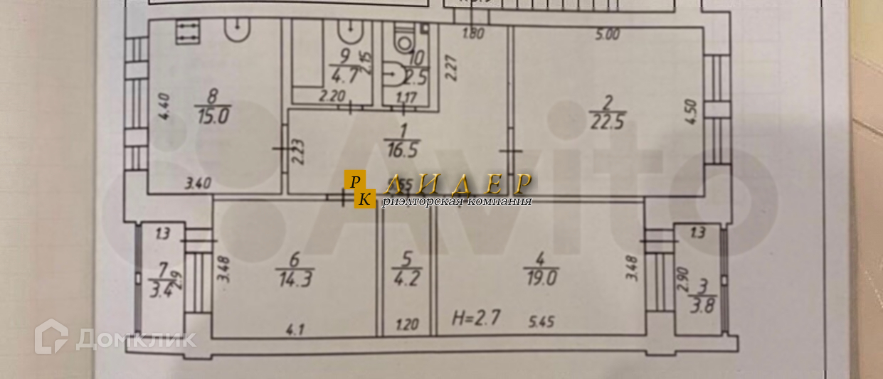 Высота потолков 2.8 м
