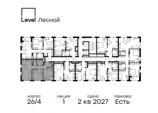Продается четырехкомнатная квартира, 86.8 м2, жилой комплекс Левел Лесной, 26/5