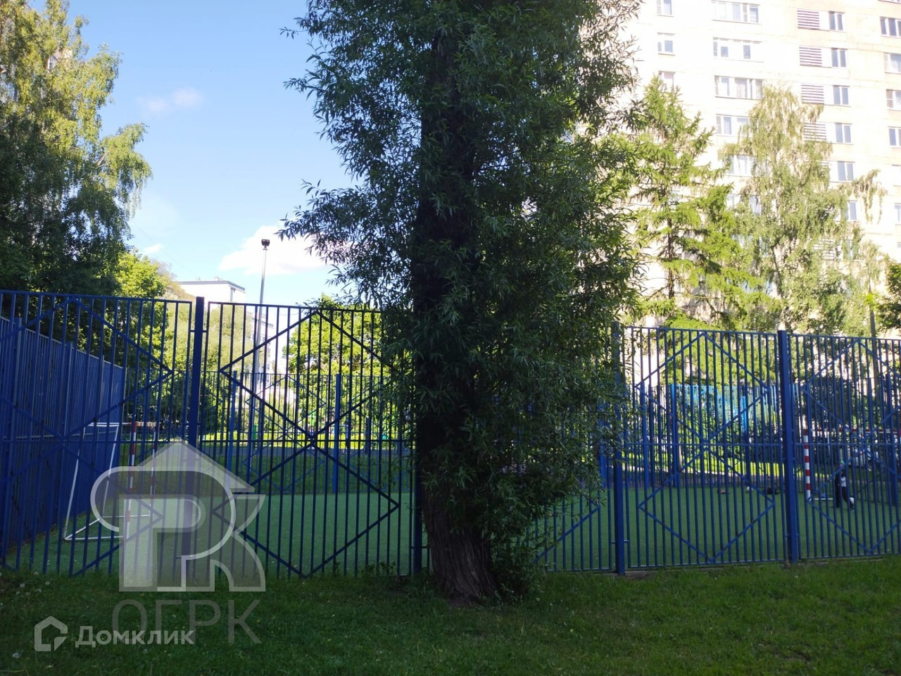 В 2 минутах ходьбы расположен корт на котором летом футбольное поле, зимой заливается коток.