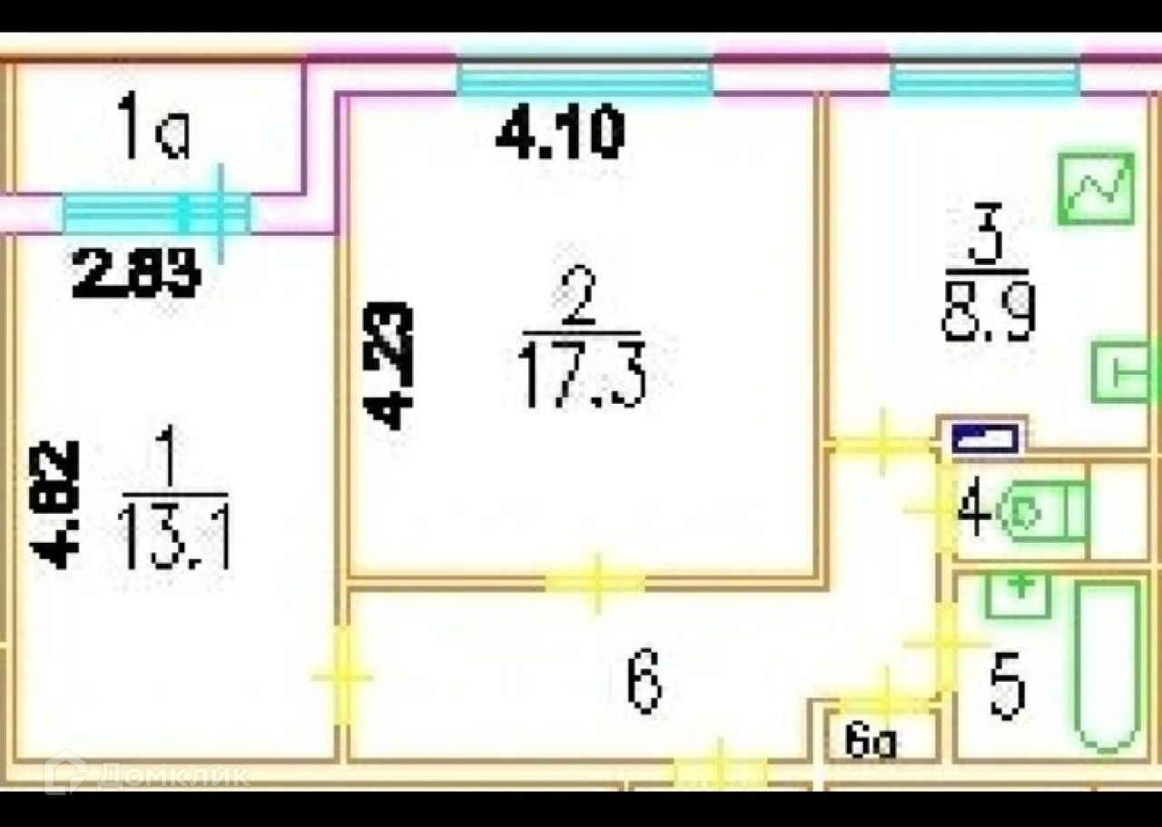 Общая площадь 52.6 м2