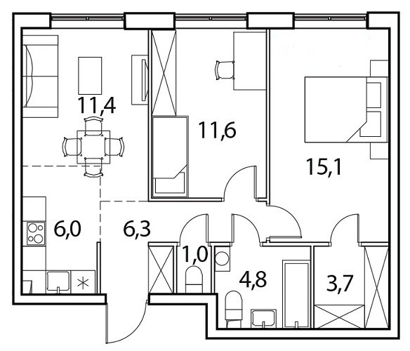 Общая площадь 58 м2