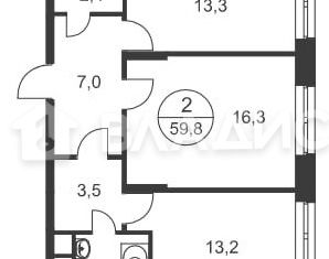 Общая площадь: 59.8 м2