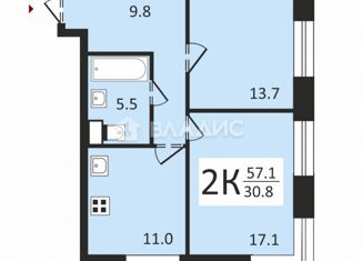 Продажа двухкомнатной квартиры, 57 м2, улица Никитина, 11к1