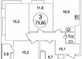 3-комнатная квартира на продажу, 76 м2, улица Москвитина, 9к3