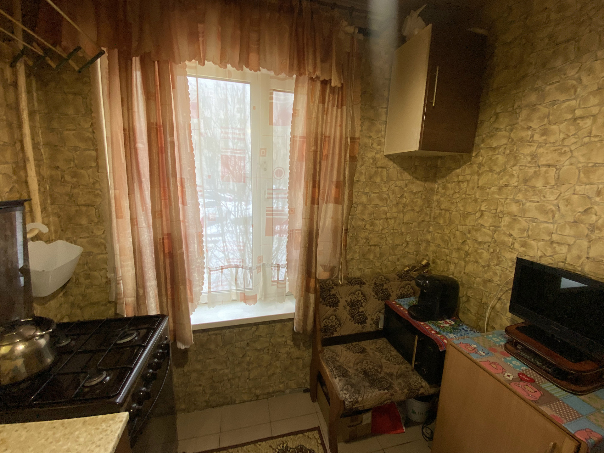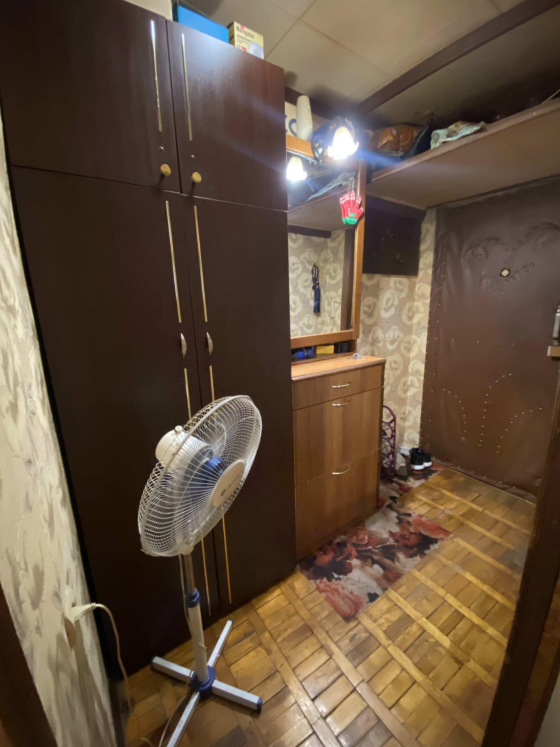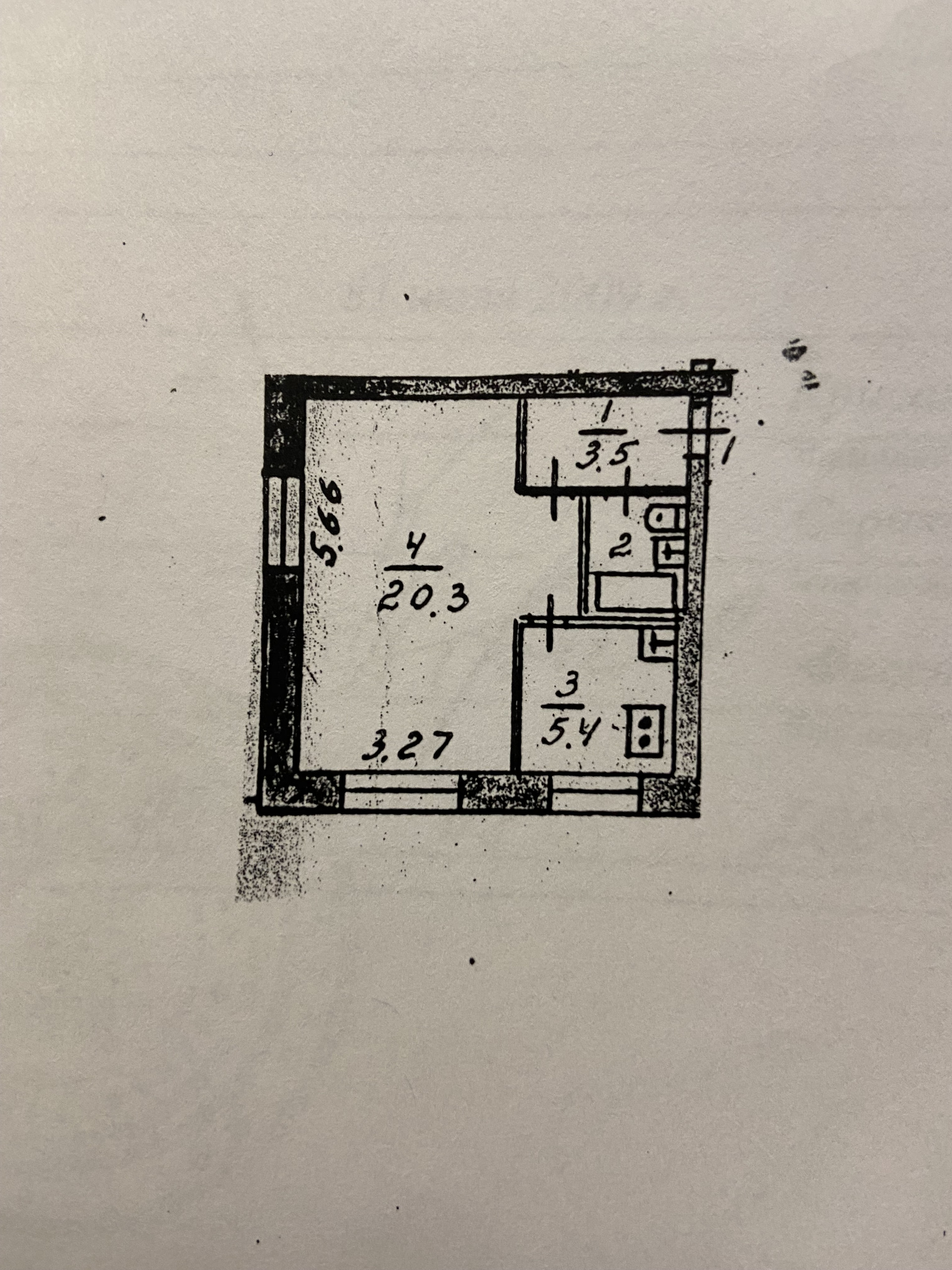 Общая площадь квартиры - 31.9 кв.м, из них жилая - 20.3 кв.м, подсобная 11.6 кв.м; коридор - 3.5 кв.м, санузел - 2.5 кв.м, кухня - 5.4 кв.м.  В комнате 2 окна, одно заложено (находится за шкафами). Перепланировок не было.