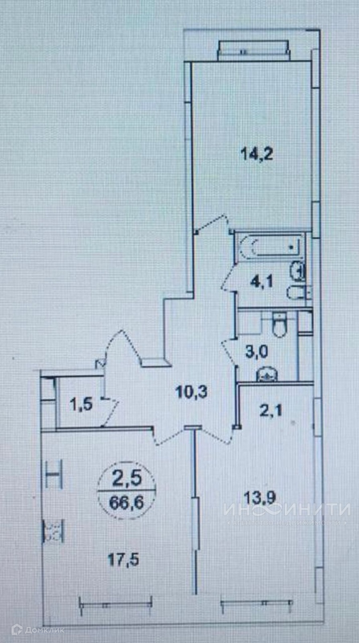 Общая площадь 66.6 м2