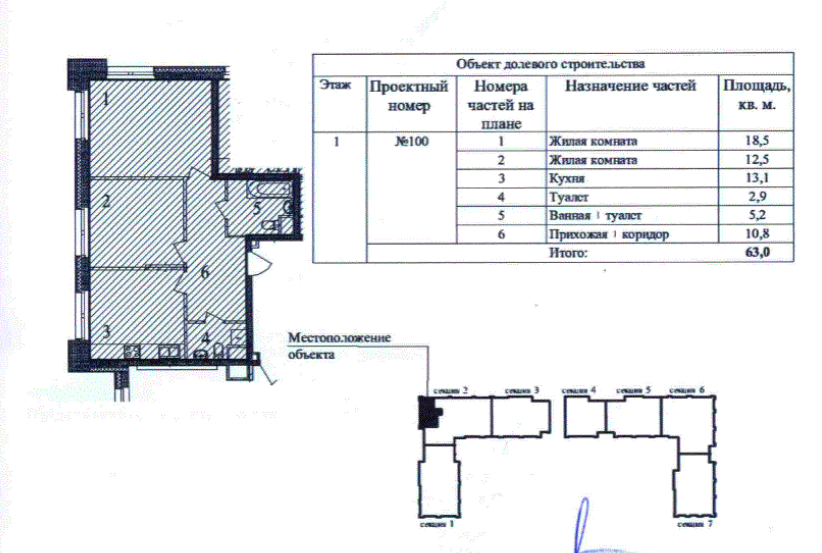 Общая площадь 63 м2