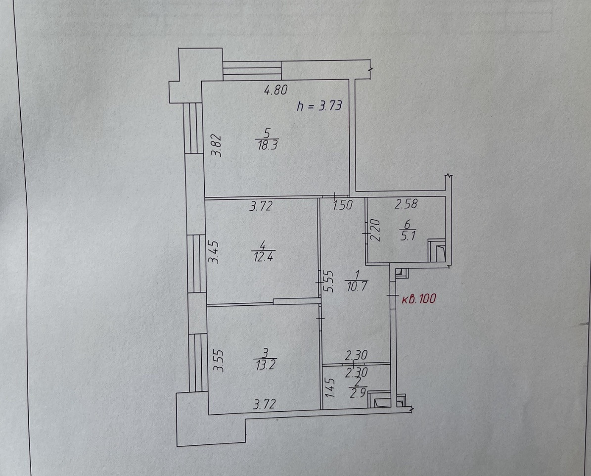 Высота потолков 3.73 м