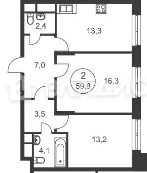 Общая площадь 59.8 м2