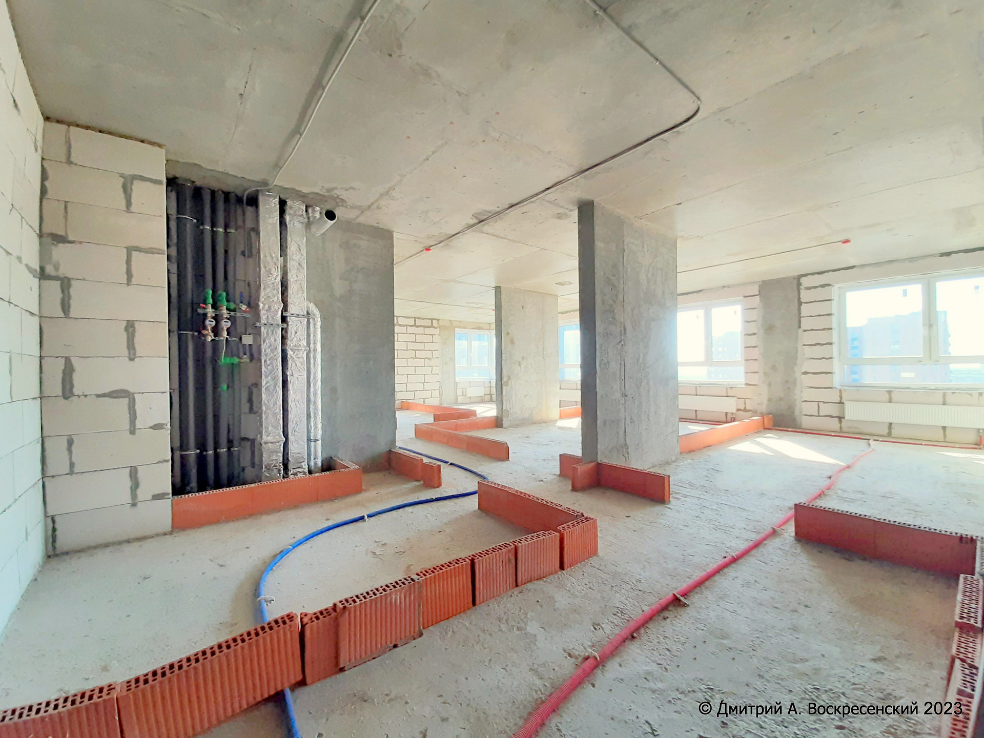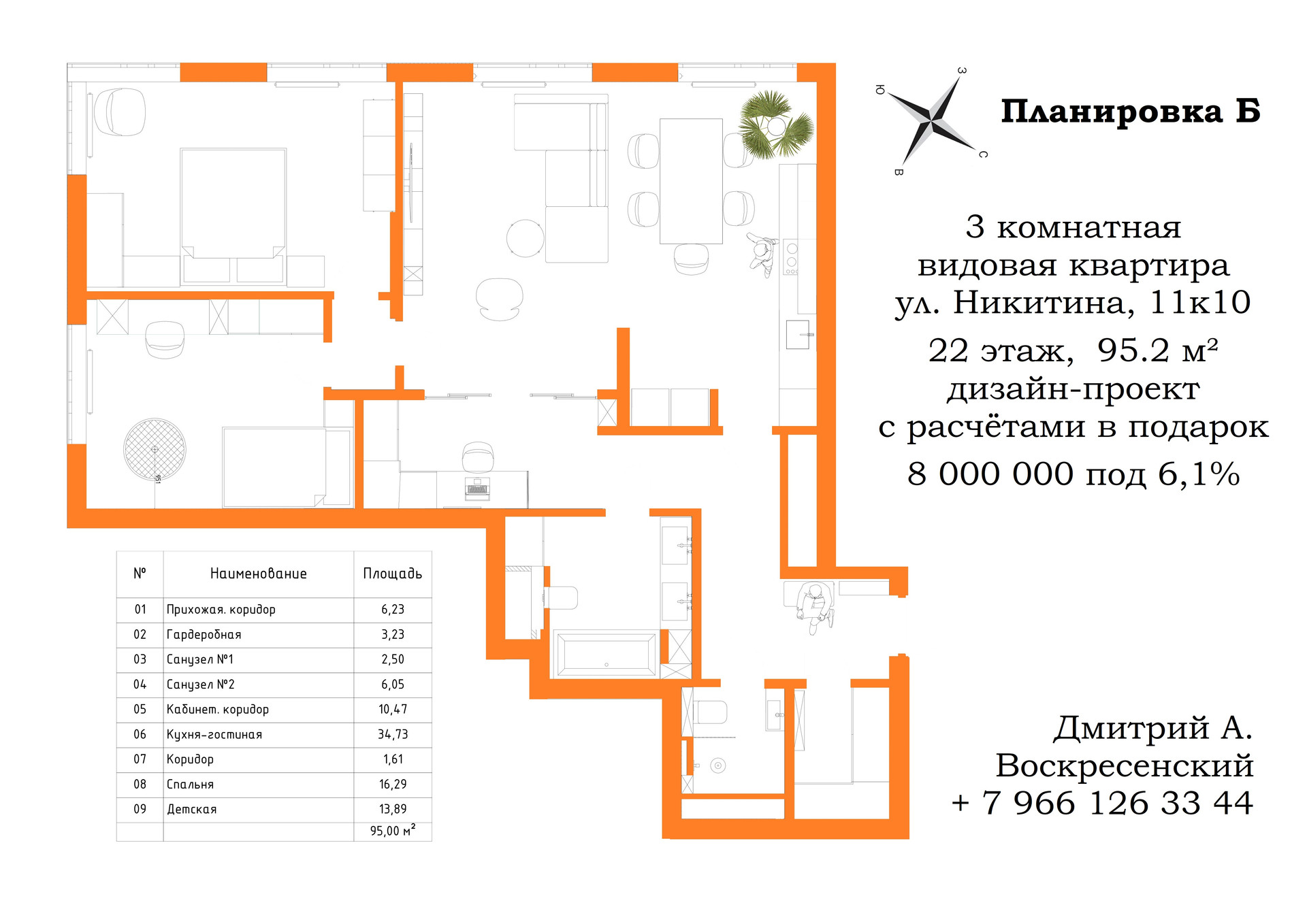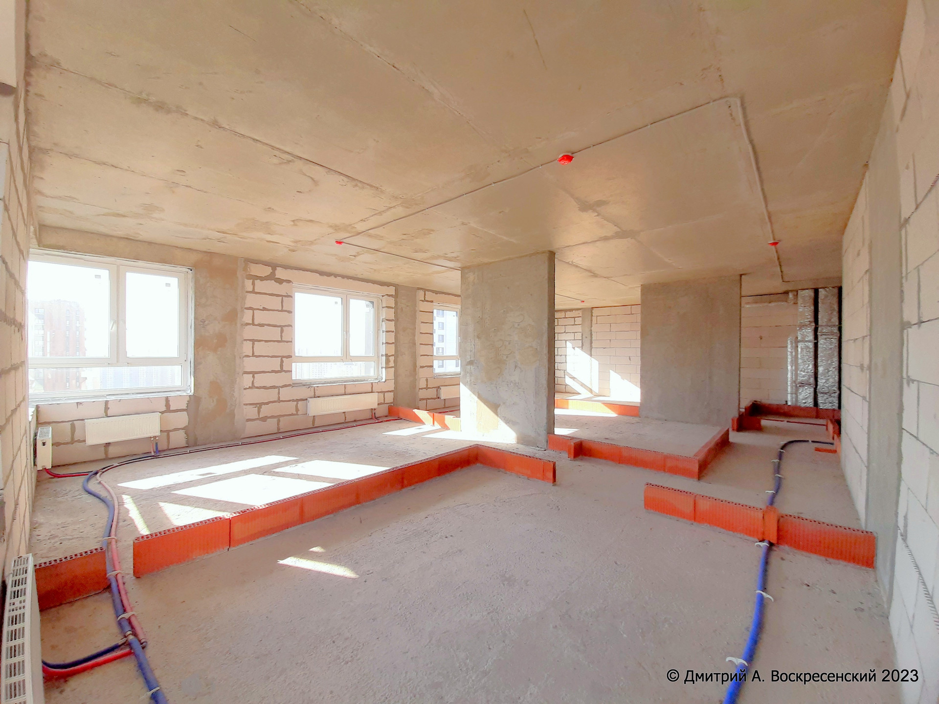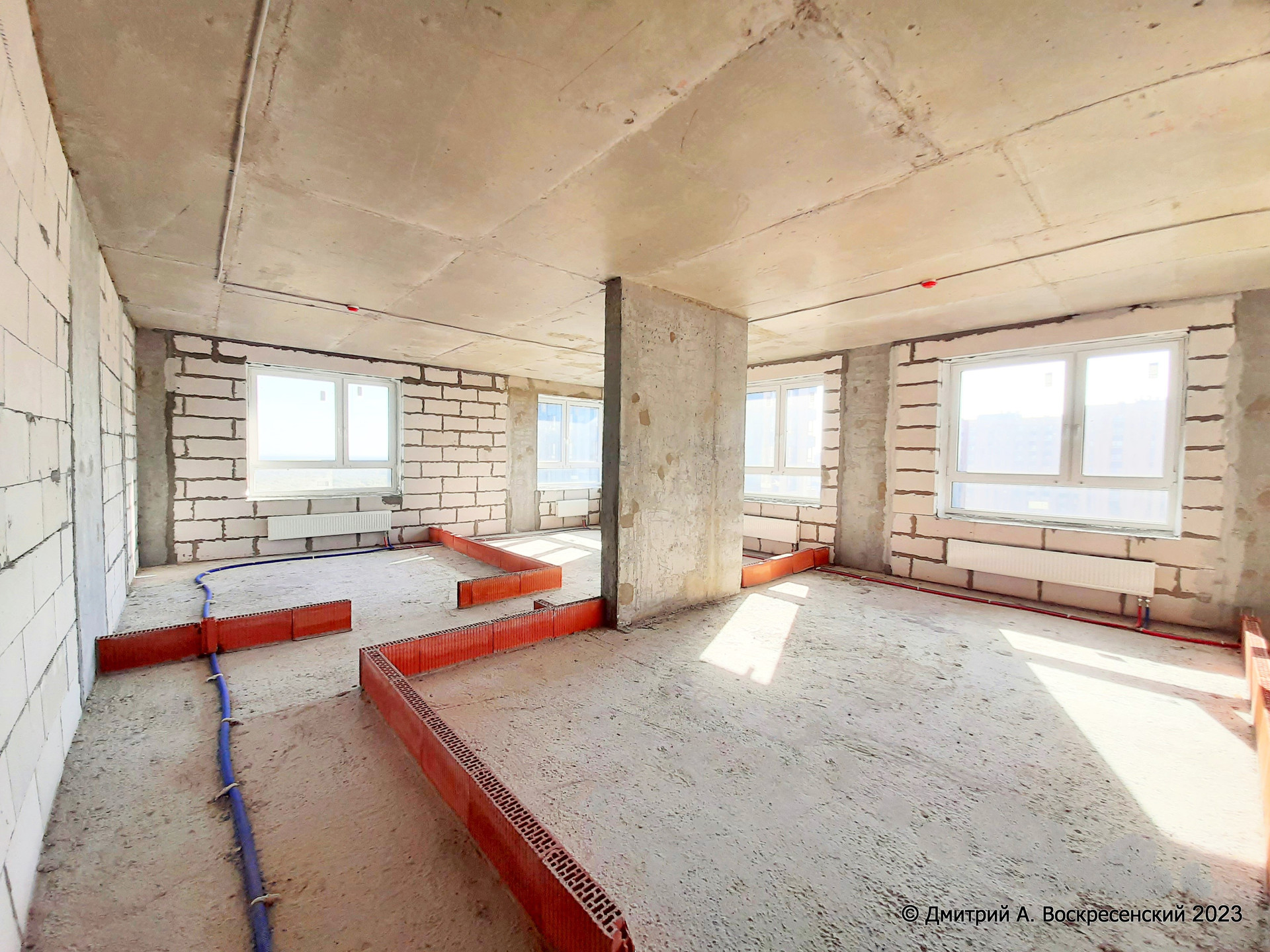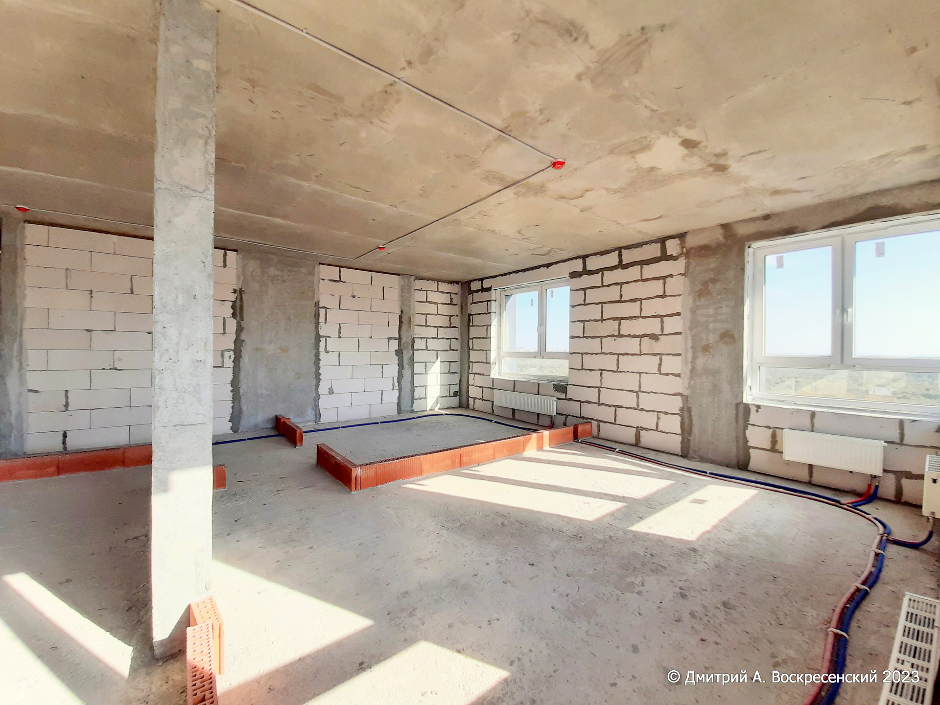 Видовая Квартира Общей площадью 95,2 м², с высокими потолками, на 22 этаже, с 3 изолированными, светлыми комнатами, с увеличенными окнами. Оптимальное расположение окон – на 2 стороны дома и видом на игровые площадки и лесной массив. Это тупиковая квартира - на этаже мимо неё не ходят. Секция отделена металлической дверью от лестничного пролёта и трёх лифтов.