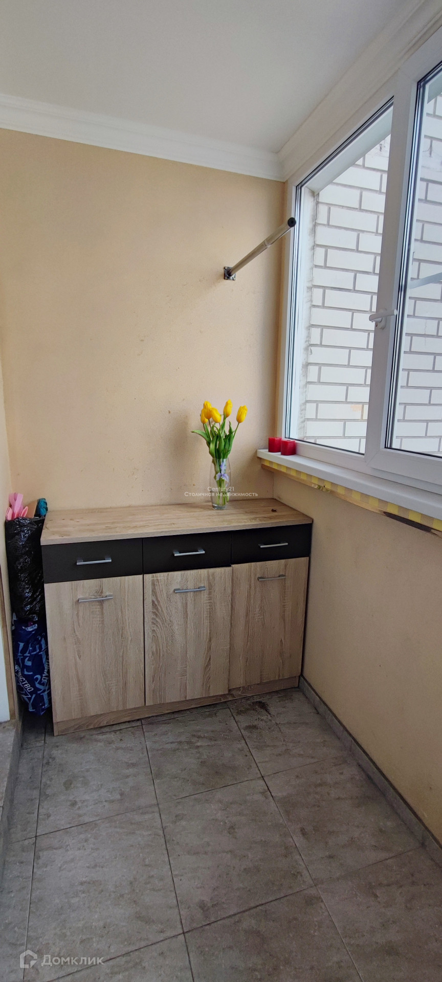 Просторная застекленная лоджия. Дополнительный выход на балкон, через лоджию.