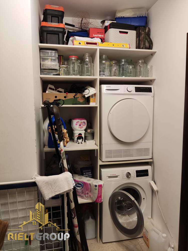 Прихожая очень просторная, квадратной формы. На лоджии убран оконный блок, что позволило организовать на ней дополнительное рабочее место. На лоджии установлены качественные окна фирмы Rehau. Также в квартире имеется гардеробная для рационального хранения вещей, в которой размещены стиральная и сушильные машинки.