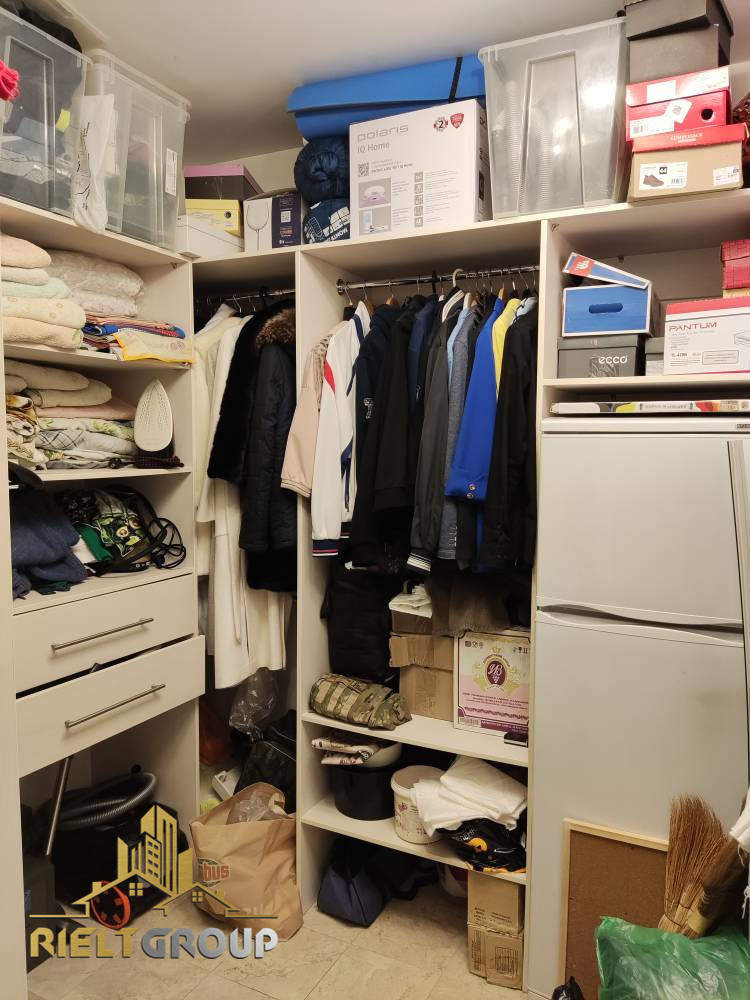 В цену квартиры входит встроенный кухонный гарнитур со встроенной техникой, прихожая, наполнение гардеробной (кроме техники), кондиционер инверторного типа и мебель (кроме стенки, дивана в спальне и шкафа-купе), сантехника.