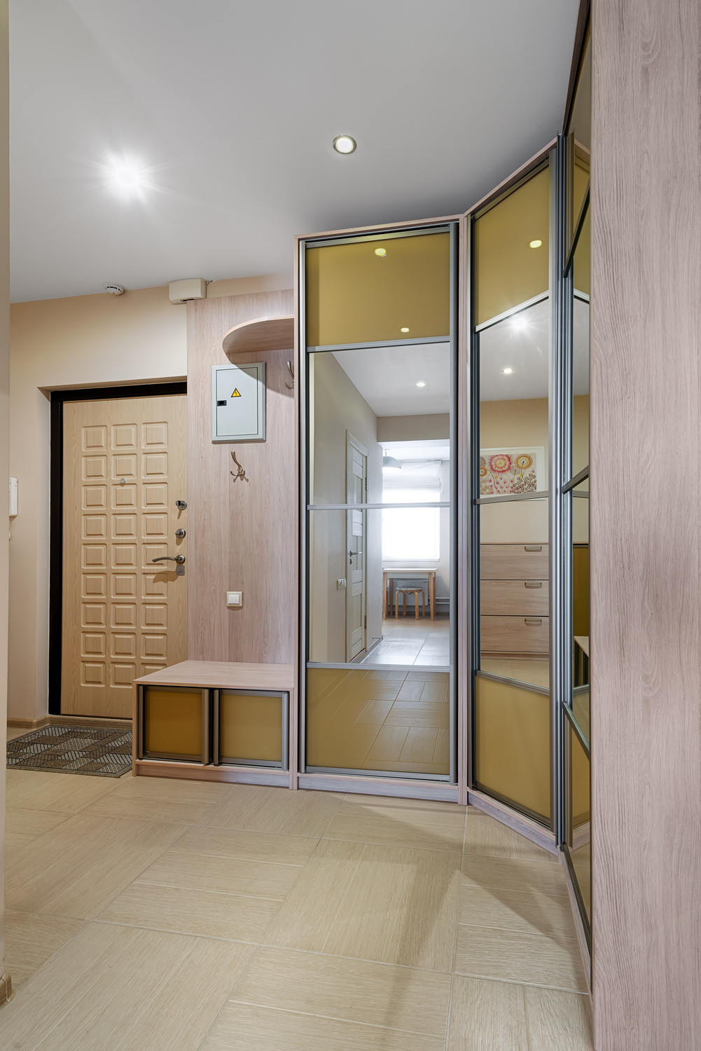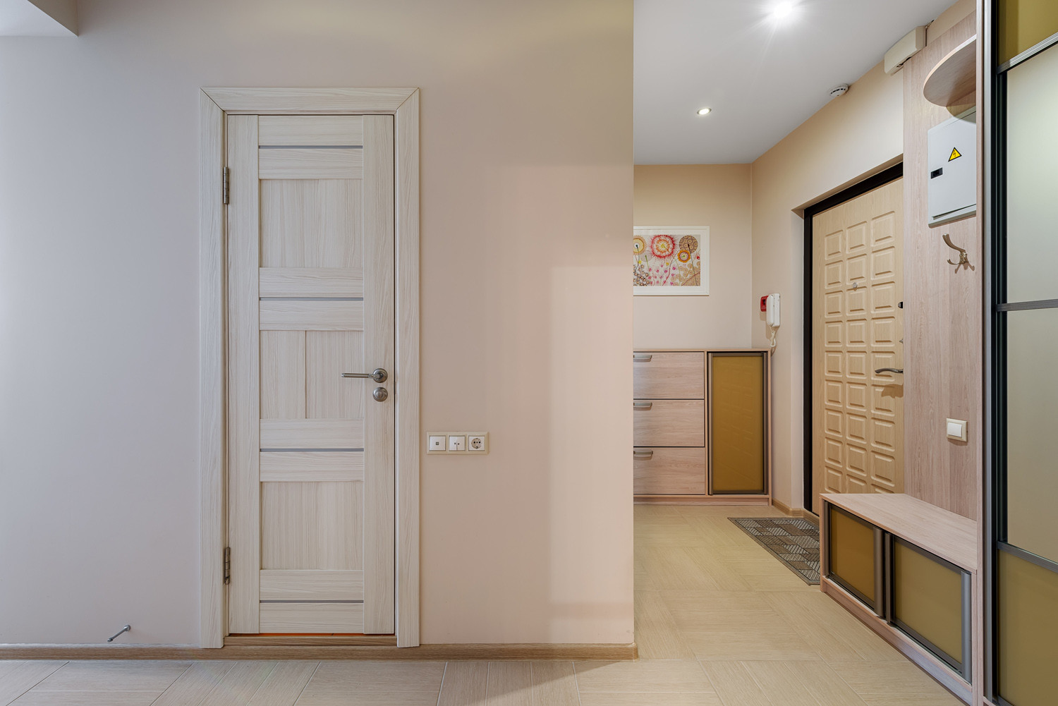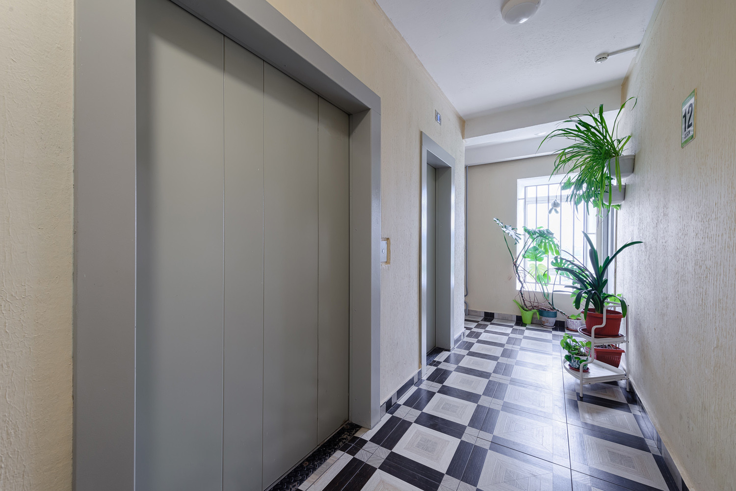 Чистый подъезд. Два лифта, один из которых грузовой.
